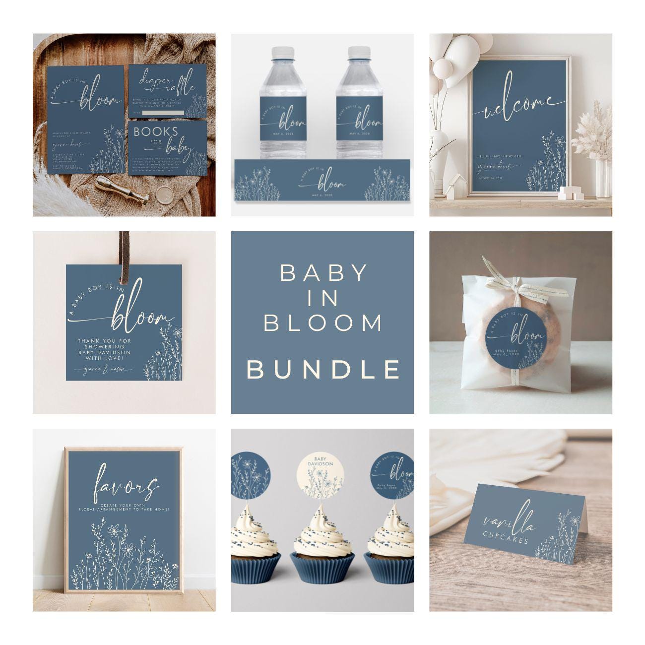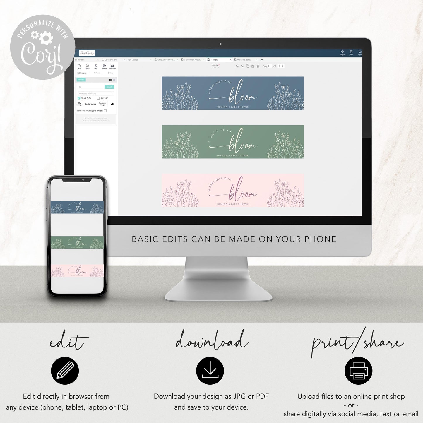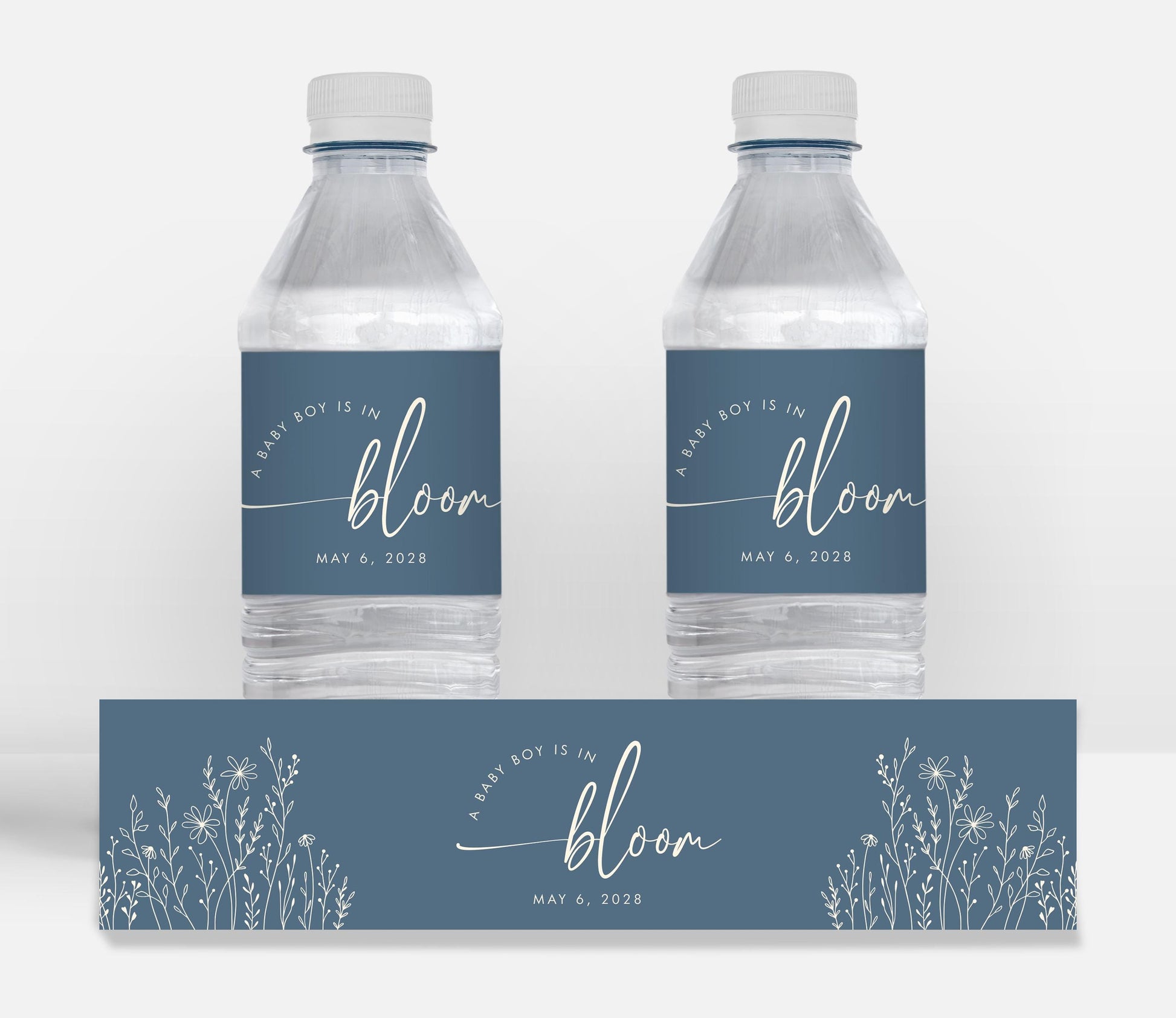 Baby Boy in Bloom, Editable bottle wrap. Simply personalize, print, cut and attach.