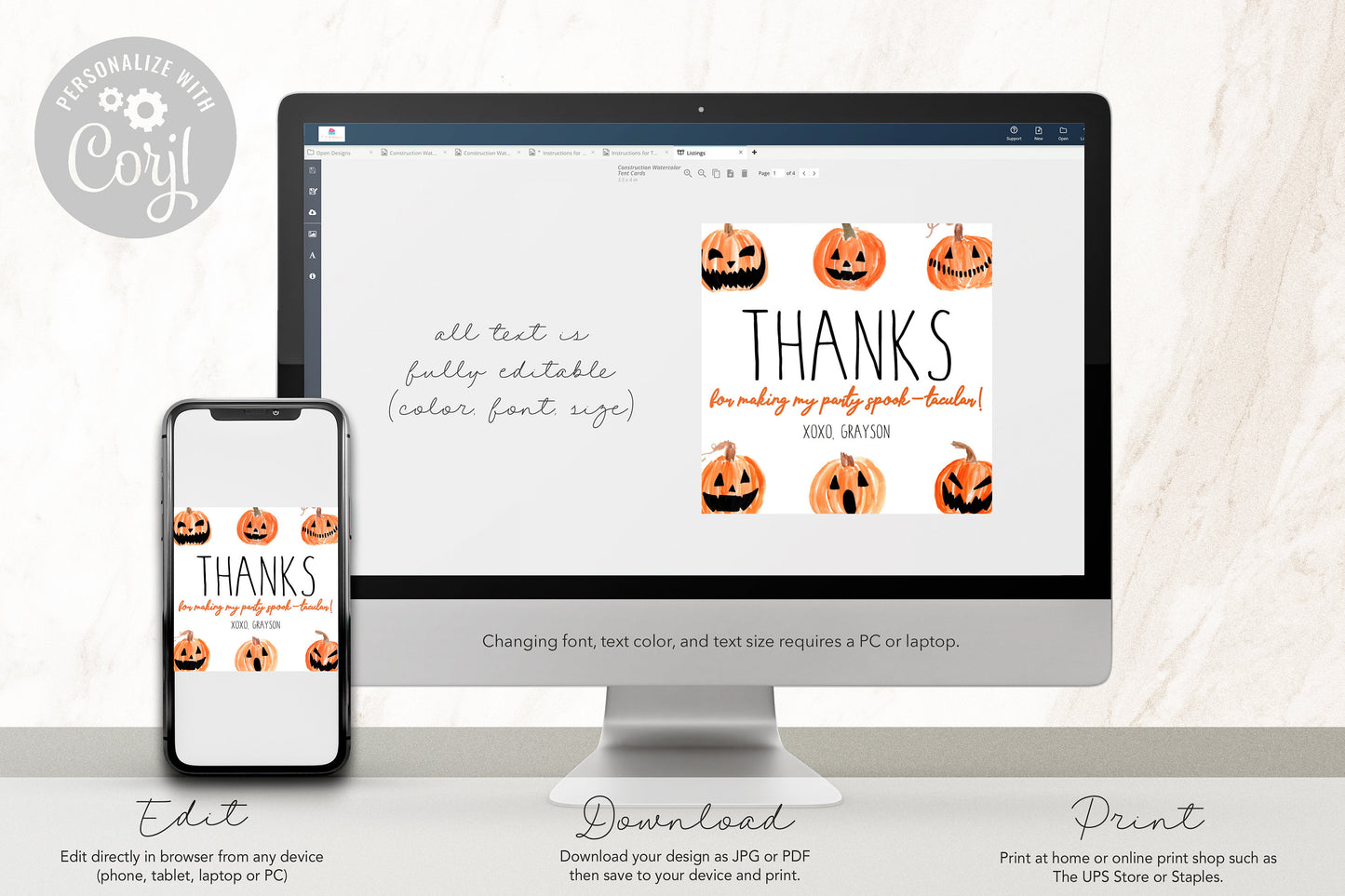 This was perfect for my needs! This allowed us to do both digital and print invites. I got the digital template file immediately, the online editing software is easy peasy, and the seller was very responsive to questions. The digital version of the invite was great for the boys inviting friends. I just received the prints for the invites we'll mail, and the quality is great! Thank you!
