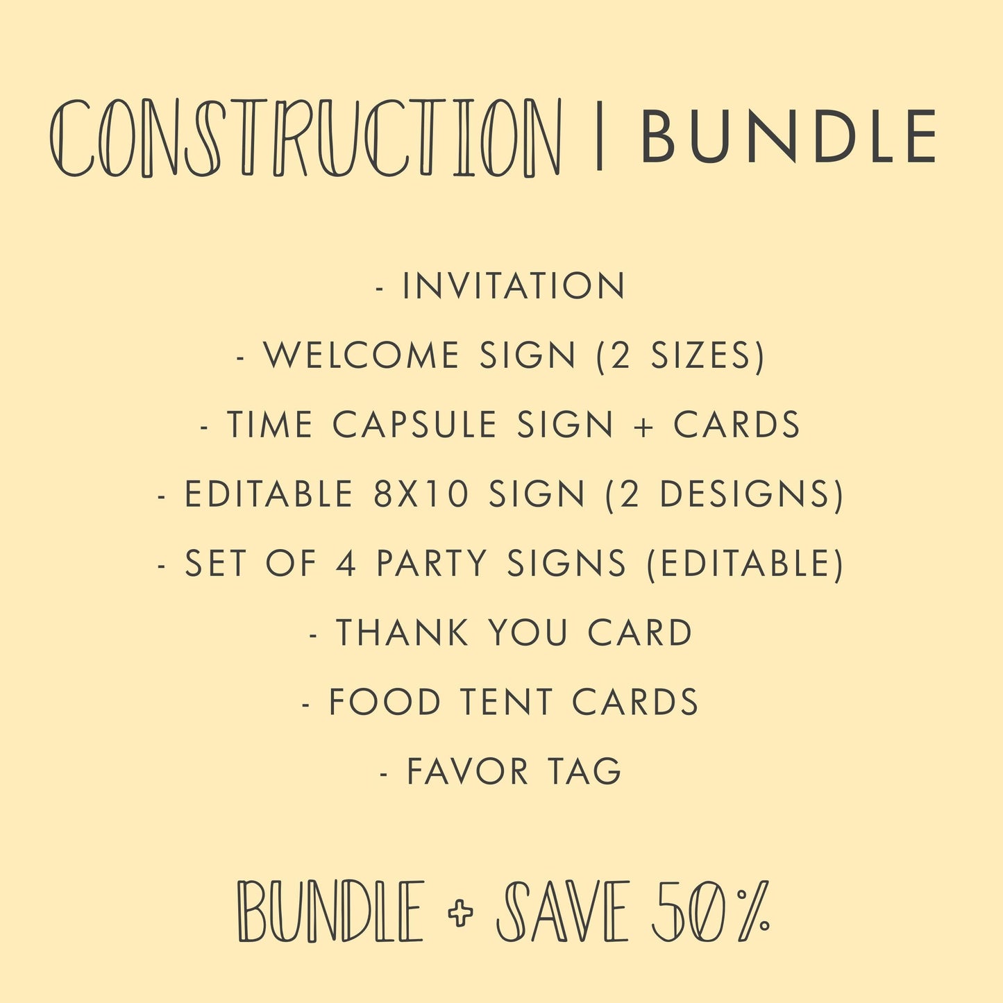 Construction Birthday Bundle - Modern Watercolor Excavator