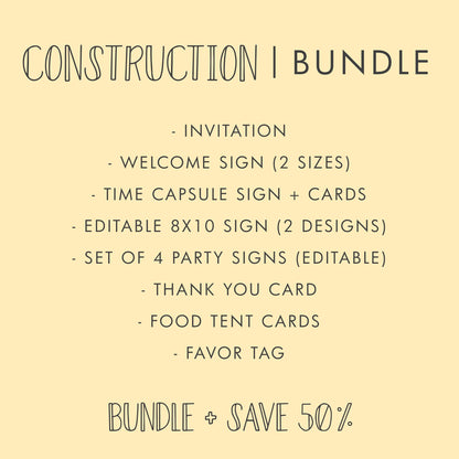 💌 Designed with love, this invite boasts a playful and fun design with construction-themed illustrations that are perfect for a birthday celebration.