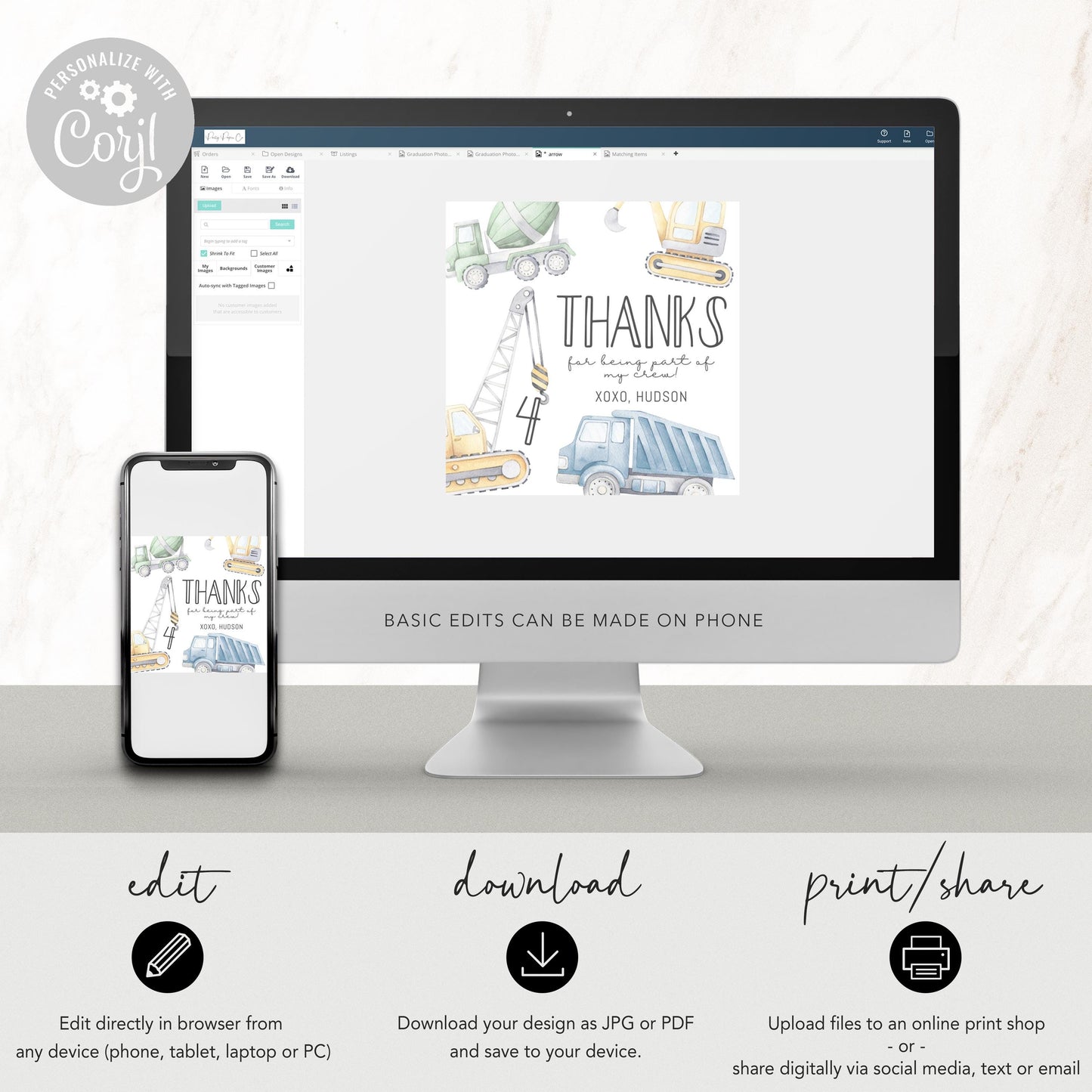 This was perfect for my needs! This allowed us to do both digital and print invites. I got the digital template file immediately, the online editing software is easy peasy, and the seller was very responsive to questions. The digital version of the invite was great for the boys inviting friends. I just received the prints for the invites we'll mail, and the quality is great! Thank you!