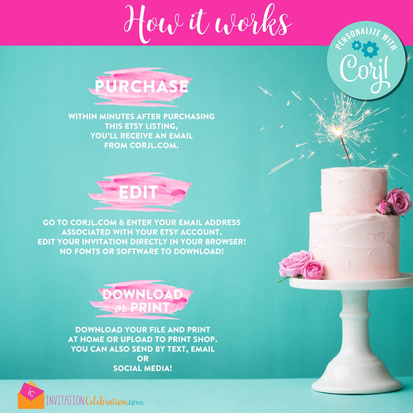 If purchasing an invitation, you can also send it digitally to your guests by text or Paperless Post.