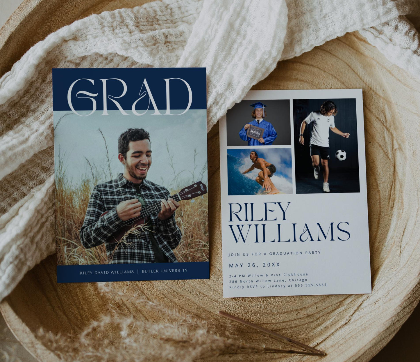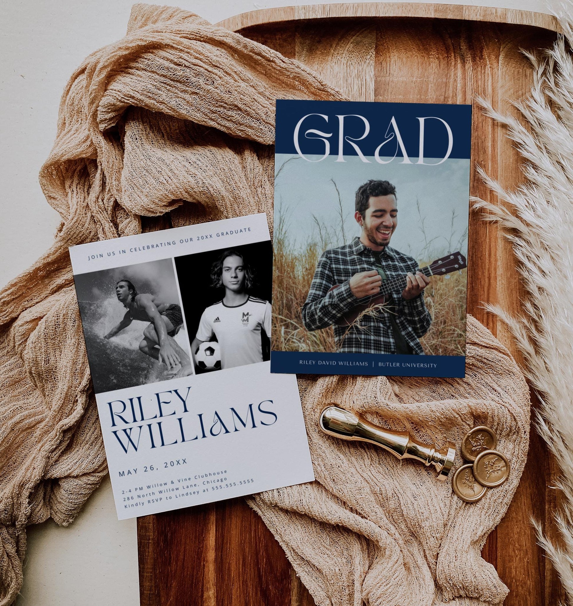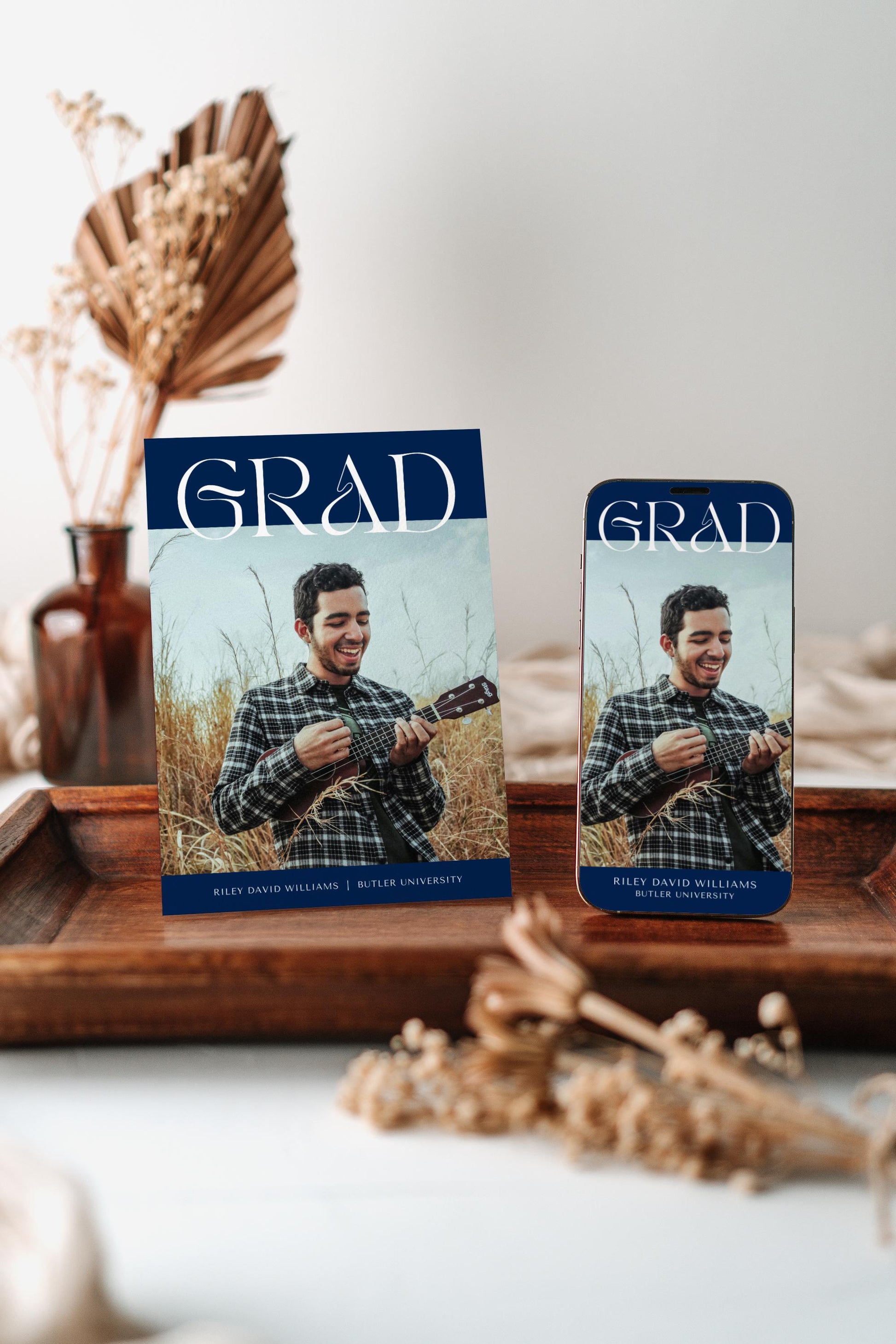 Modern Minimalist Graduation Announcement Editable Template | 5x7" JPG, PDF