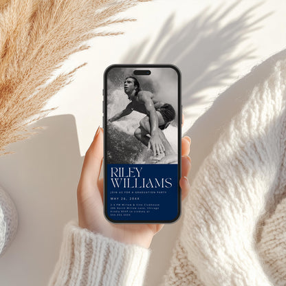 Celebrate your graduate with this modern minimalist graduation invitation! Perfect for high school or college graduation parties. Easily customize the details yourself in Canva—no special software required!