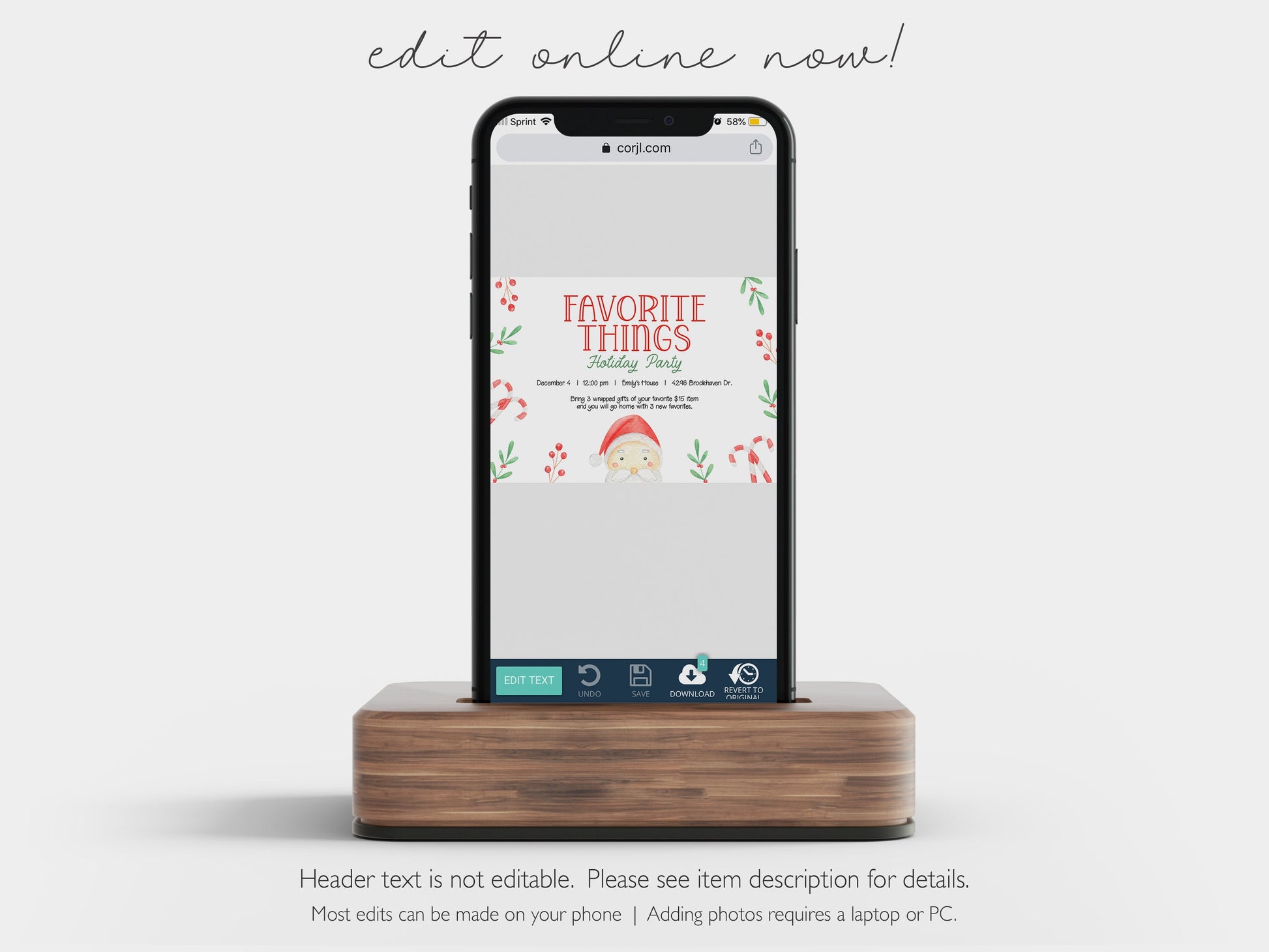 Header text (Favorite Things) cannot be edited. All other wording can be fully edited (color/font/size).