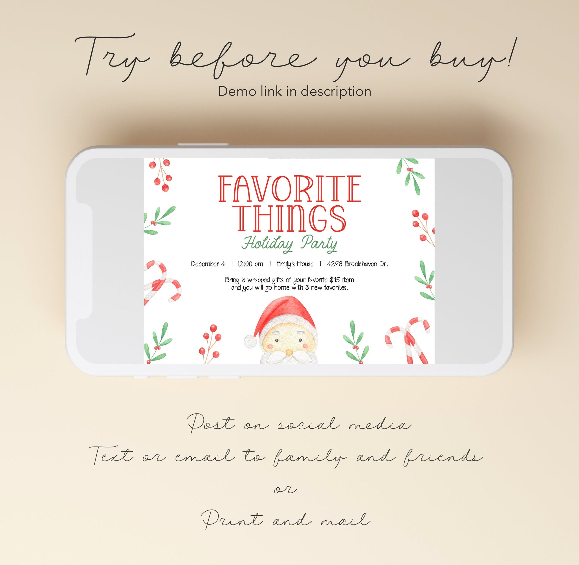 If purchasing an invitation, you can also send it digitally to your guests by text or Paperless Post.