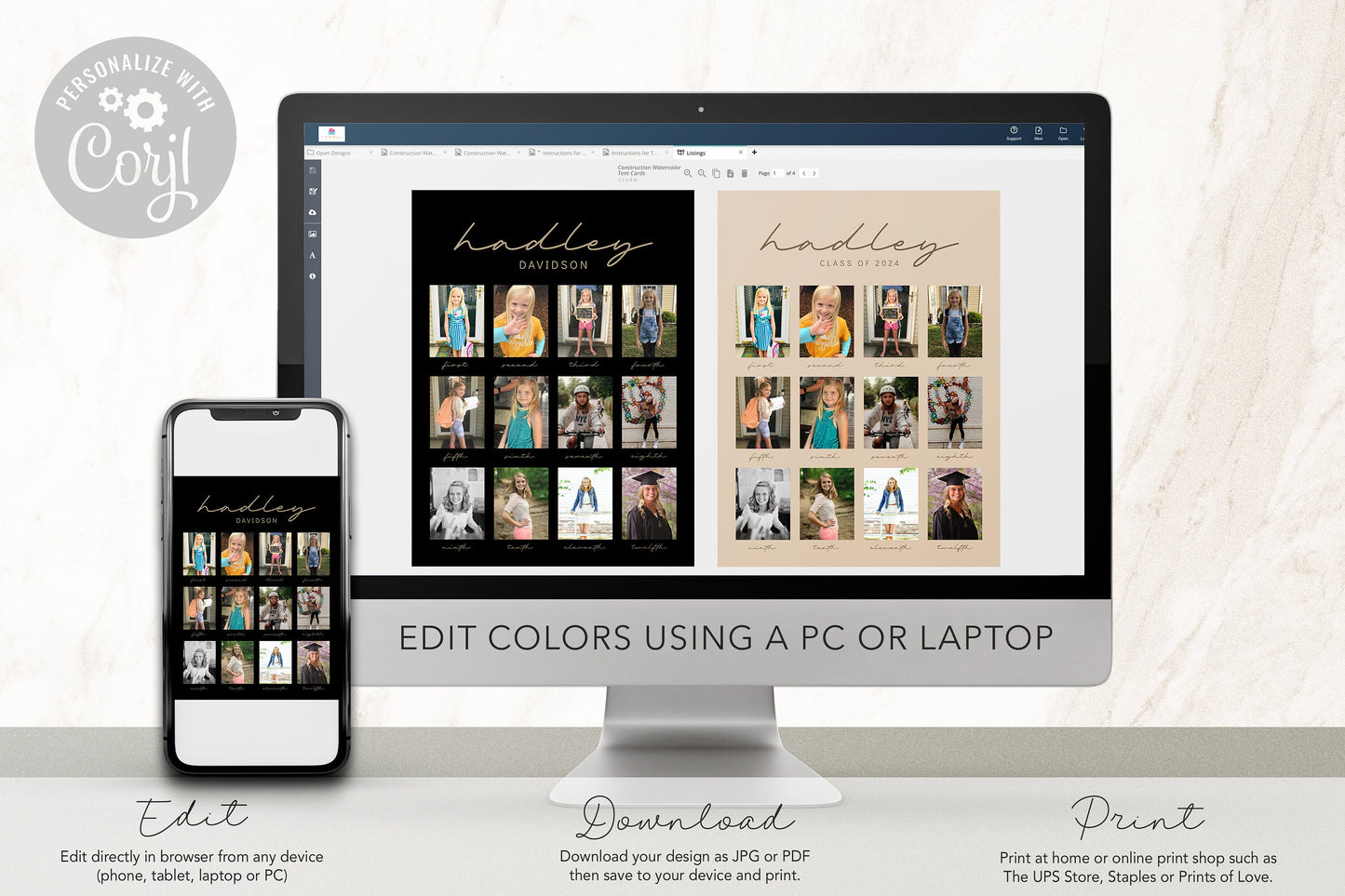I loved being able to Immediately download the template, add my nephew's school pictures and have this printed up in 24 hours at a nearby print shop on foam board. Lots of graduation party attendees commented on the design and wanted to use for their own kid's parties!
