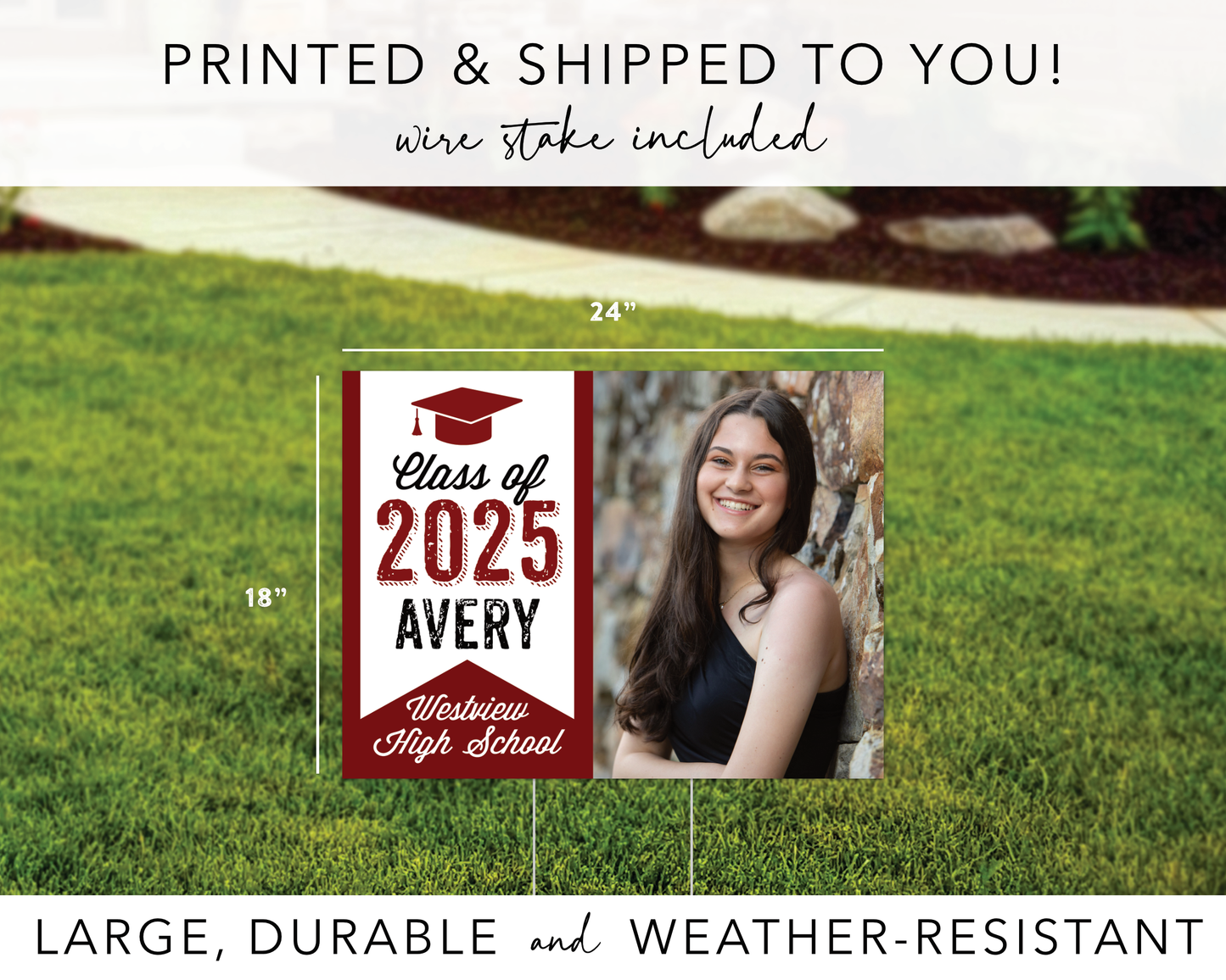 π Celebrate your 2025 graduate with a large, customized photo yard sign!