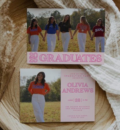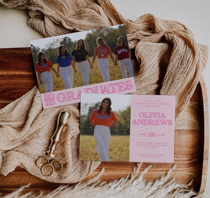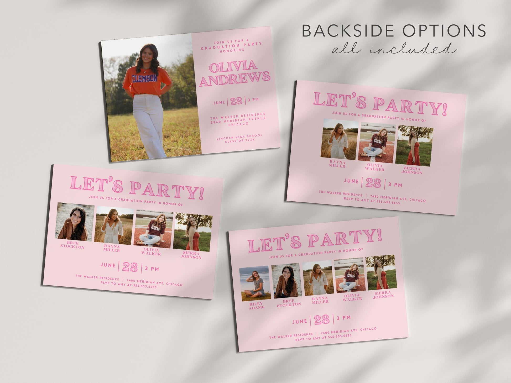 Group Graduation Party Invitation for 3, 4, 5 Graduates - Joint Grad Party Invite for Friends, Editable CANVA Template, Girly Pink Aesthetic