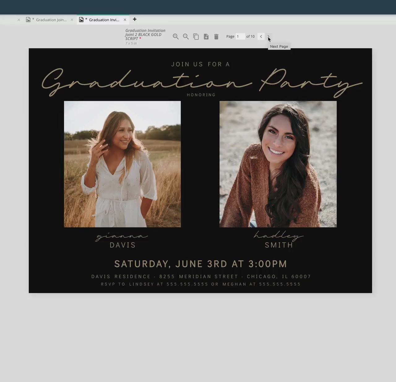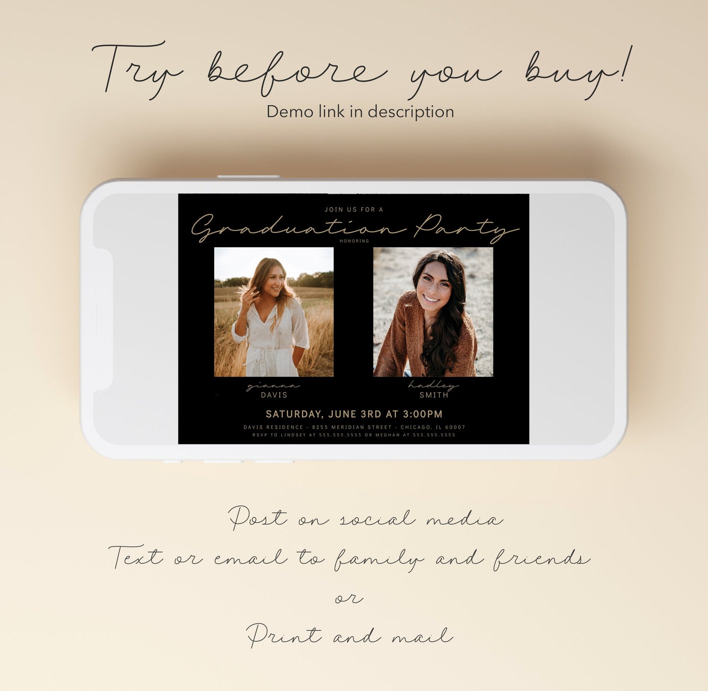 π Both graduates' names are prominently featured on the invitation, making it clear that this is a joint celebration of their accomplishments.