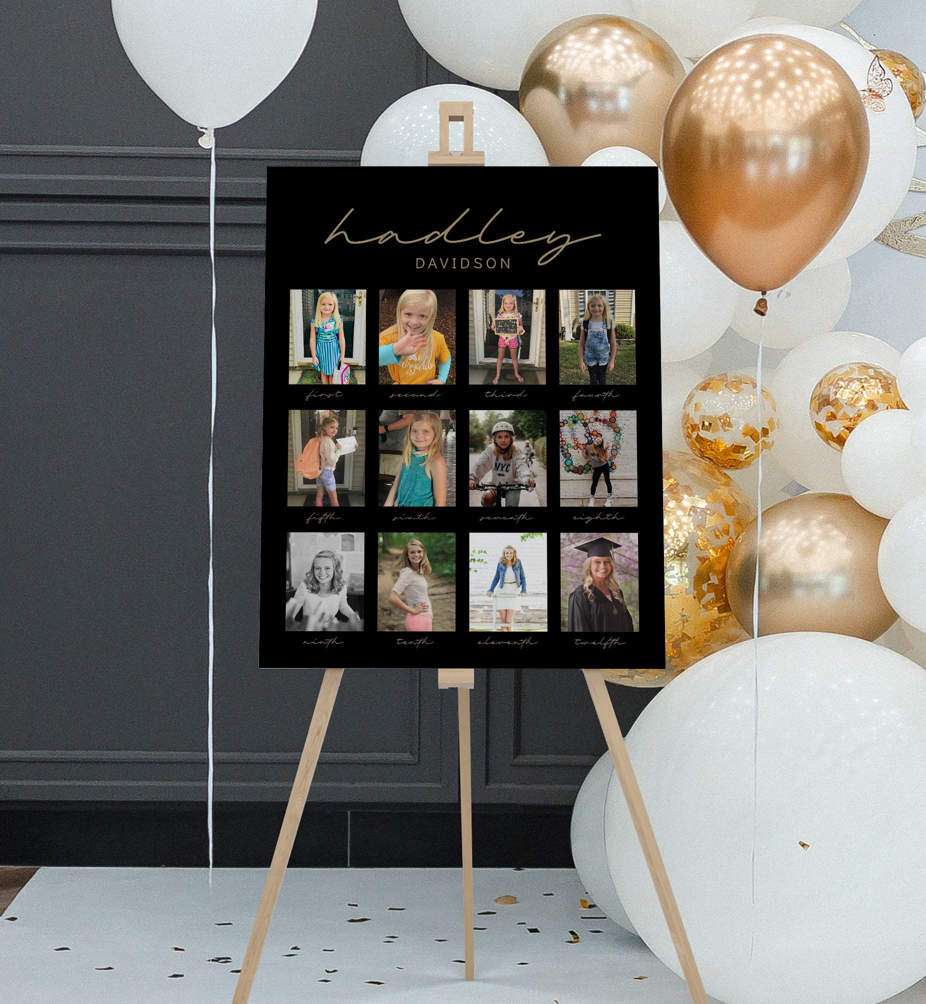 I loved being able to Immediately download the template, add my nephew's school pictures and have this printed up in 24 hours at a nearby print shop on foam board. Lots of graduation party attendees commented on the design and wanted to use for their own kid's parties!
