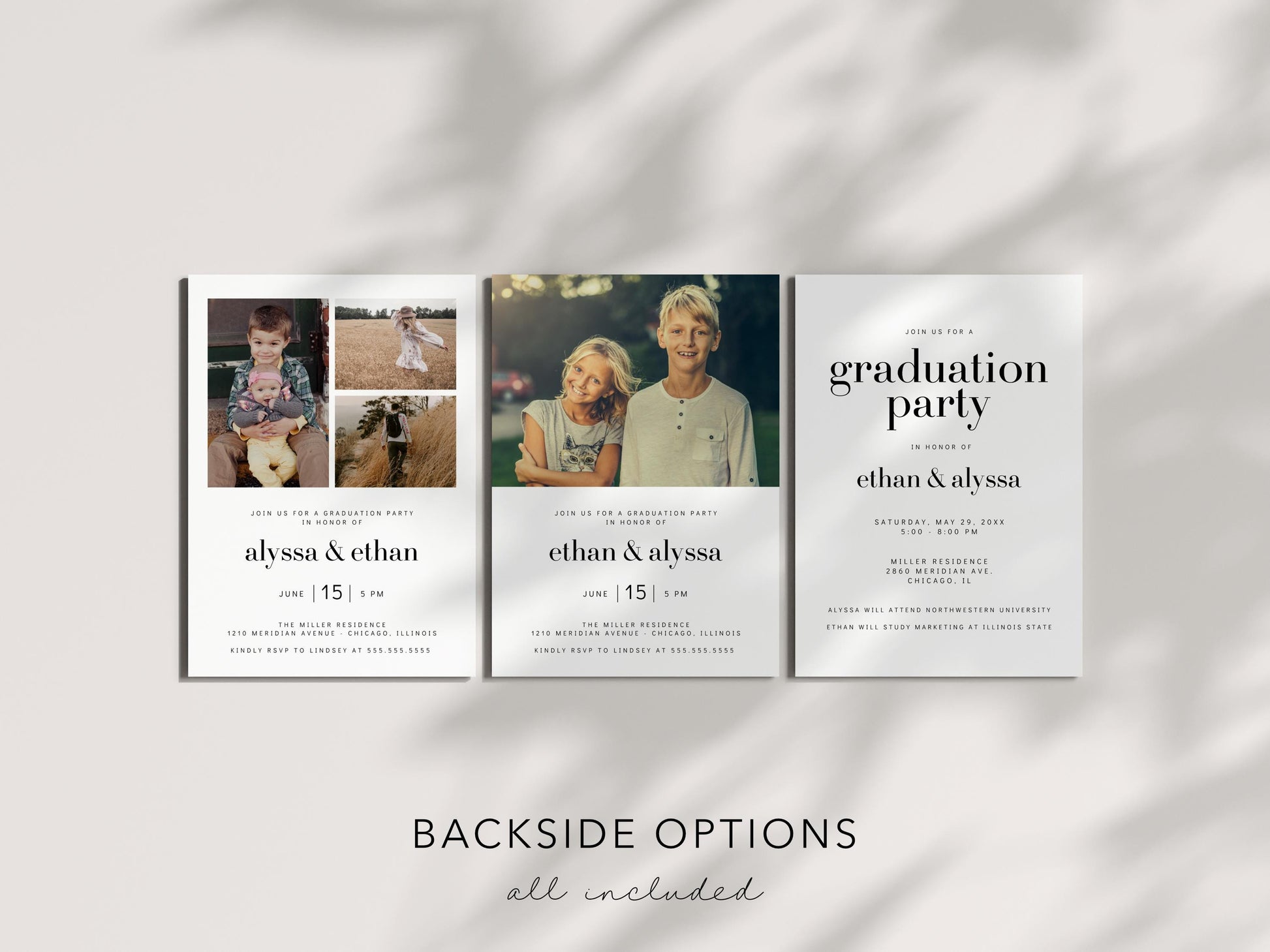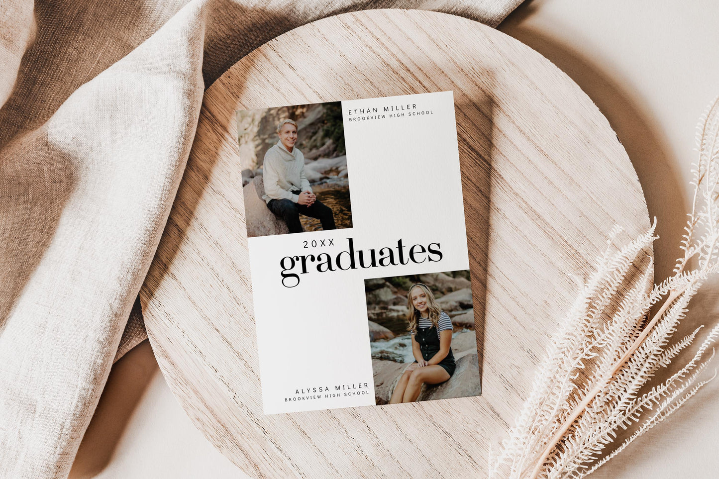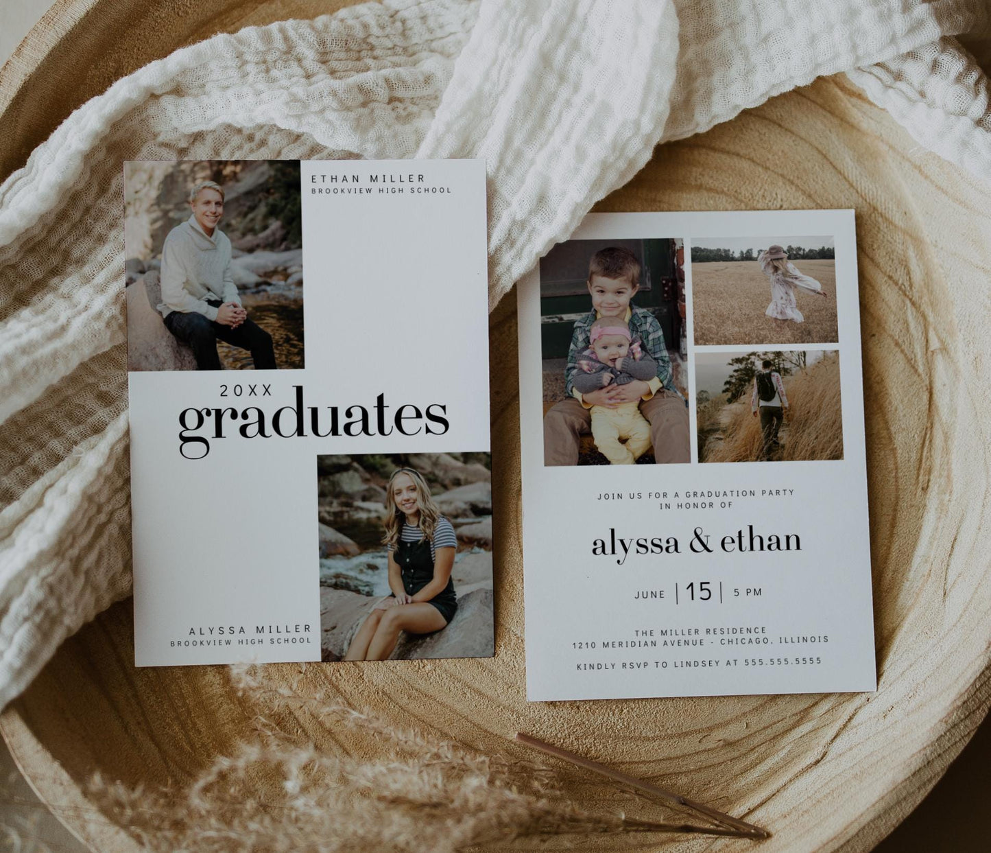 π Both graduates' names are prominently featured on the invitation, making it clear that this is a joint celebration of their accomplishments.