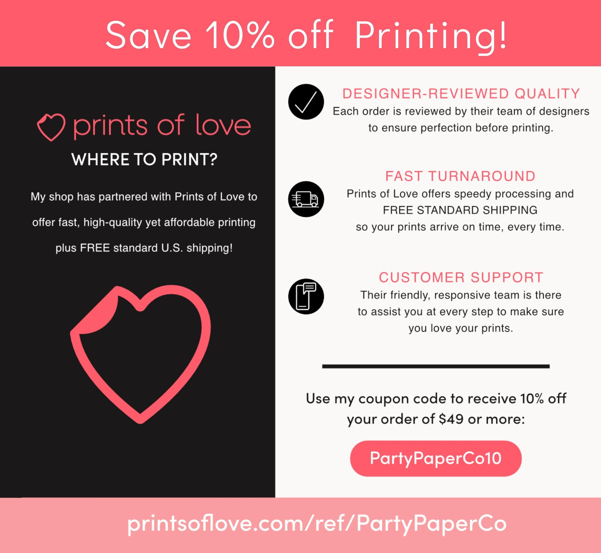 Use code "PartyPaperCo10" at Prints of Love for 10% off your order of $49+!