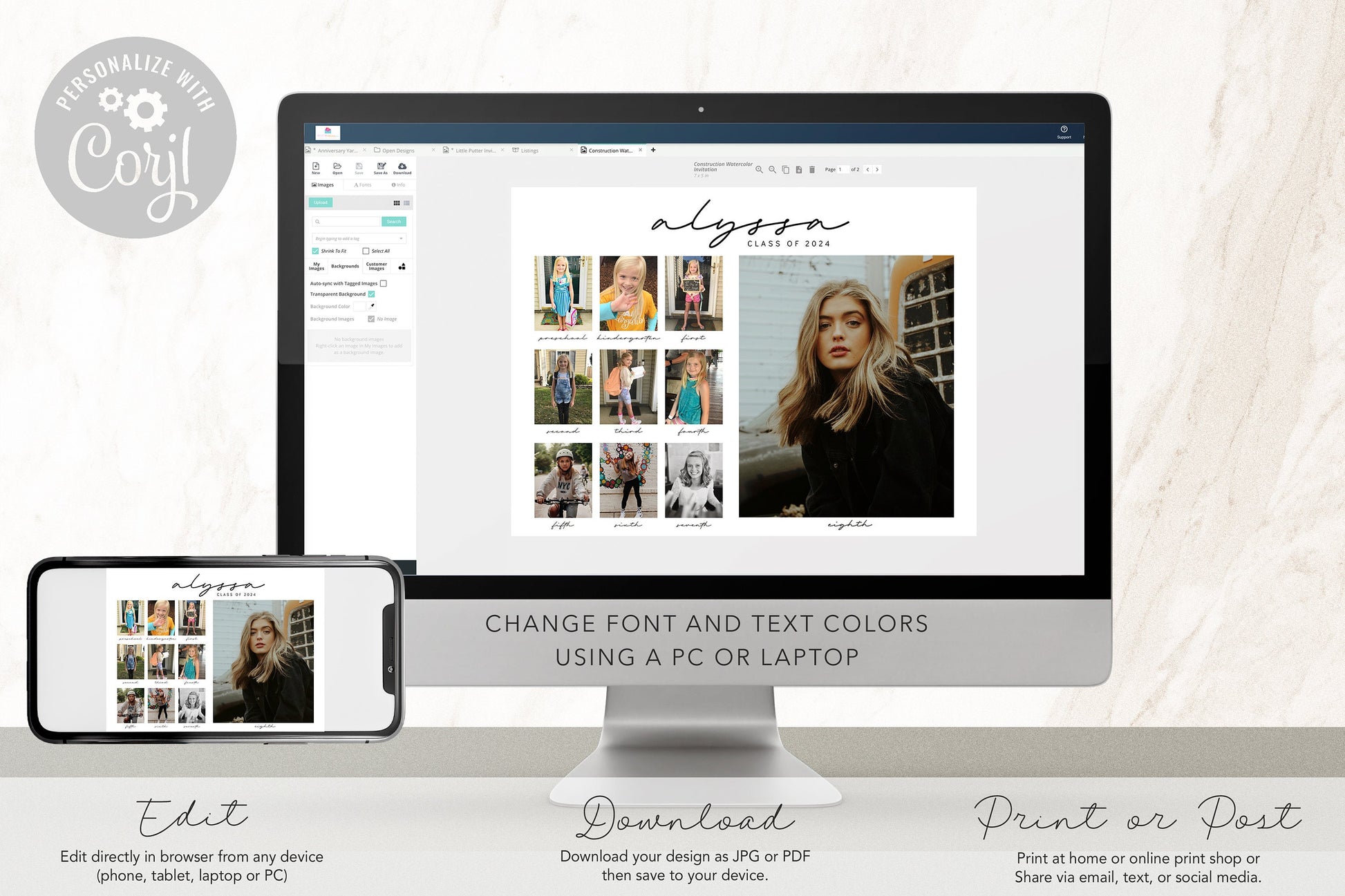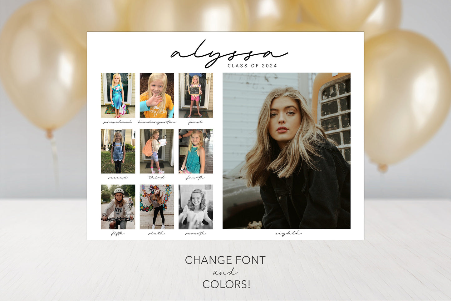 I loved being able to Immediately download the template, add my nephew's school pictures and have this printed up in 24 hours at a nearby print shop on foam board. Lots of graduation party attendees commented on the design and wanted to use for their own kid's parties!