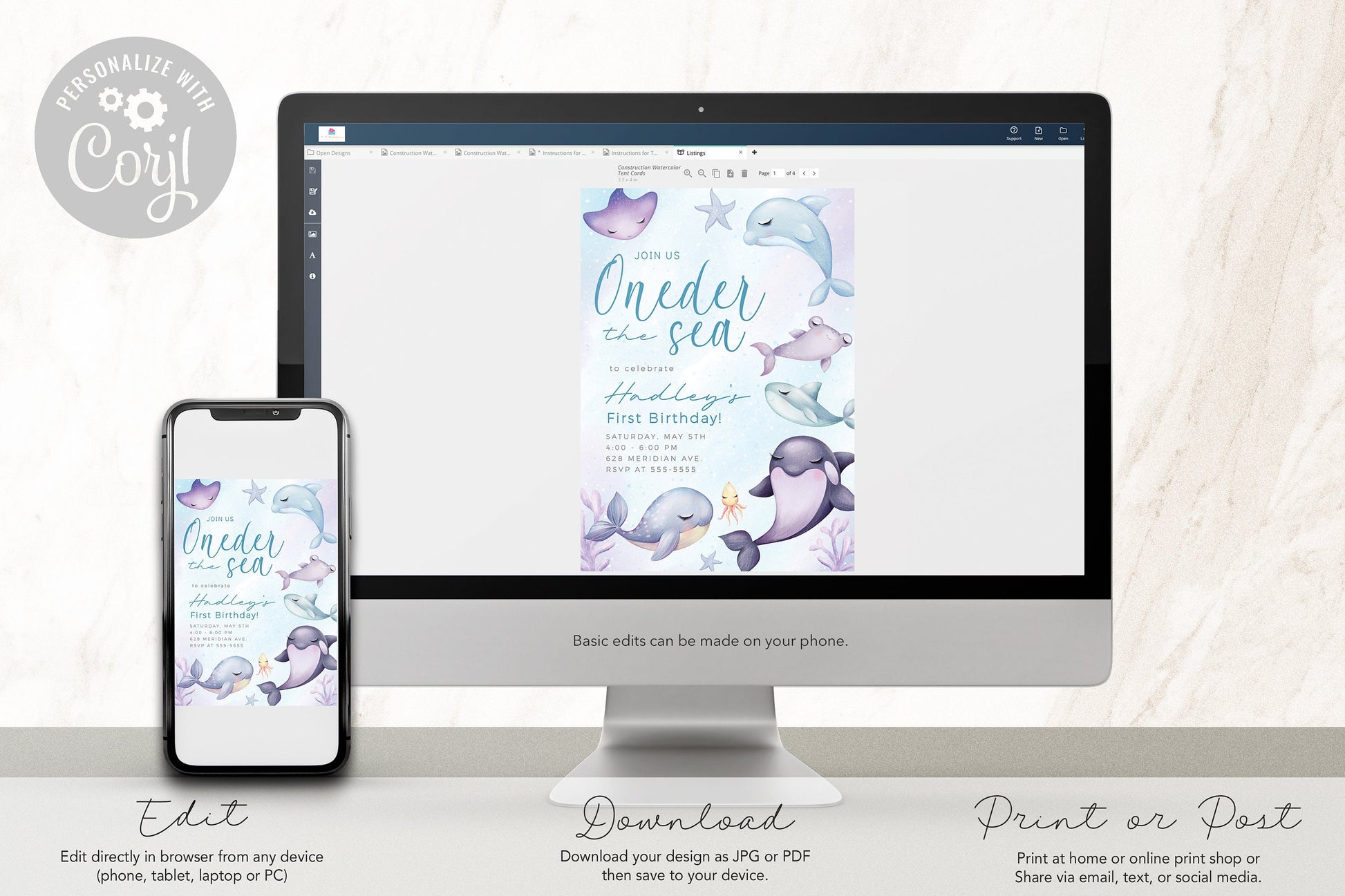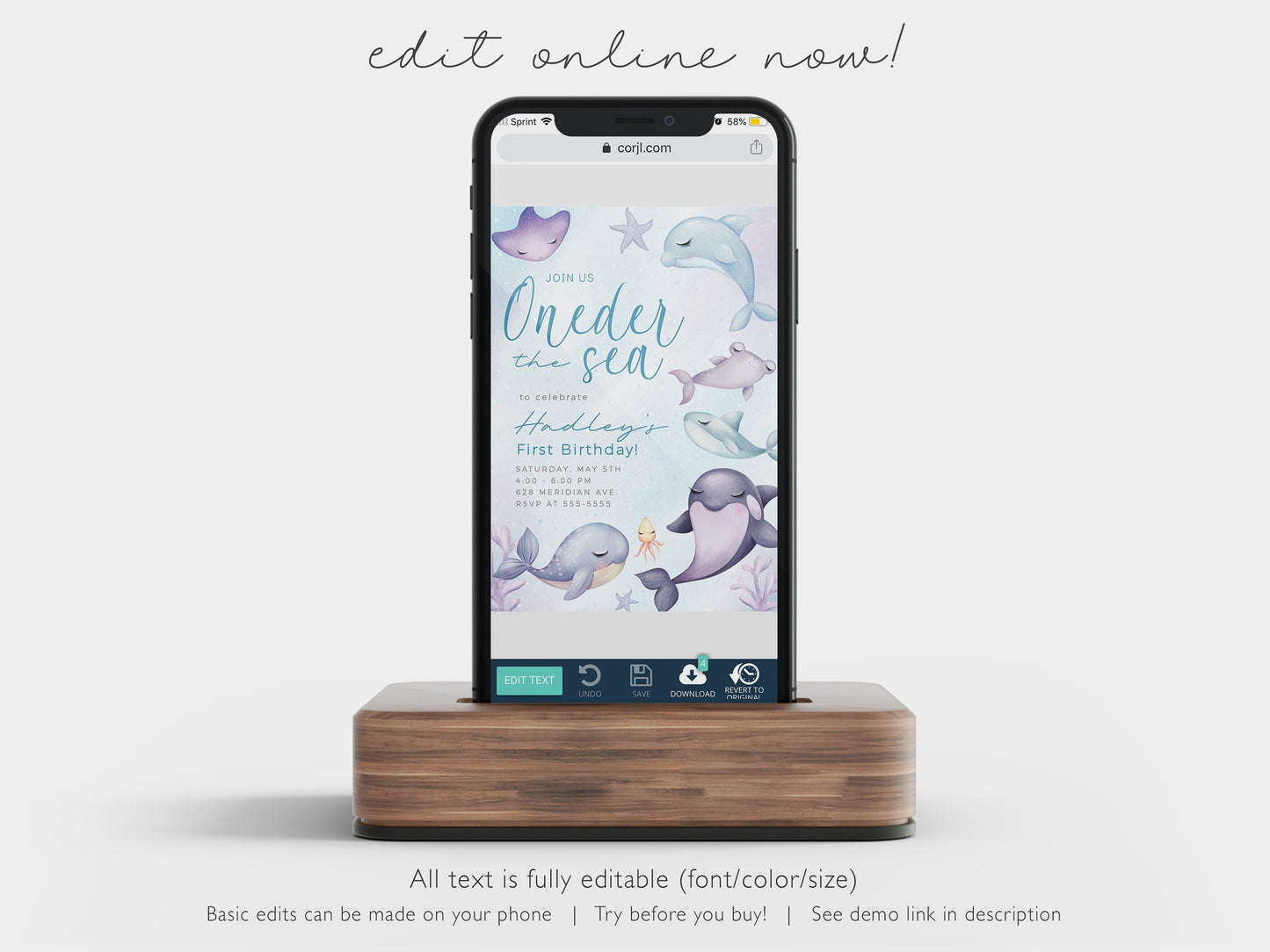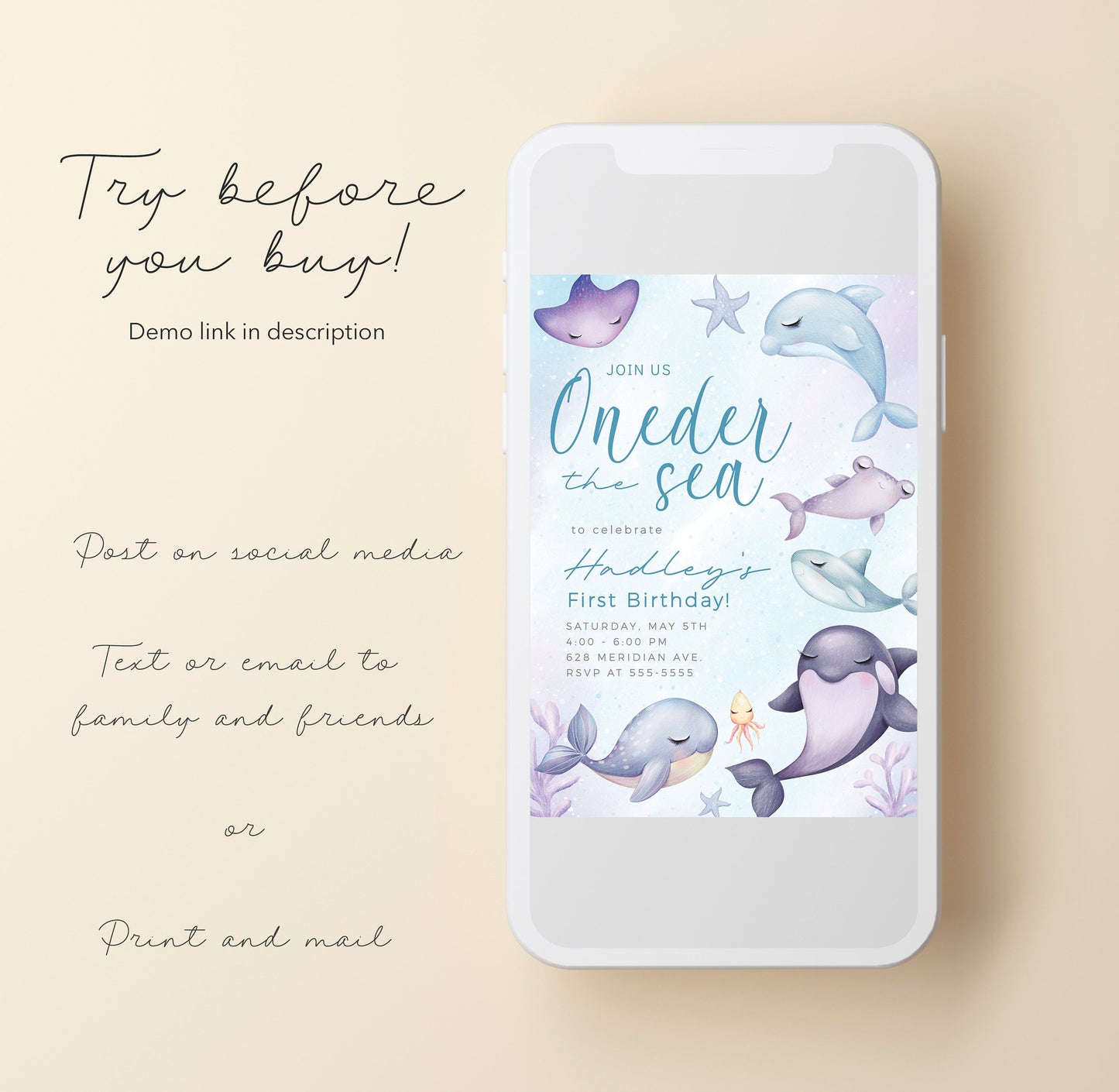 Make a splash with our "ONEder the Sea" Editable First Birthday Invitation and invite your loved ones to join in the undersea adventure of a lifetime!