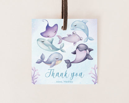 Featuring adorable watercolor sea animals such as Dolphin, Whale, Orca, Sharks, Jellyfish and Stingray.