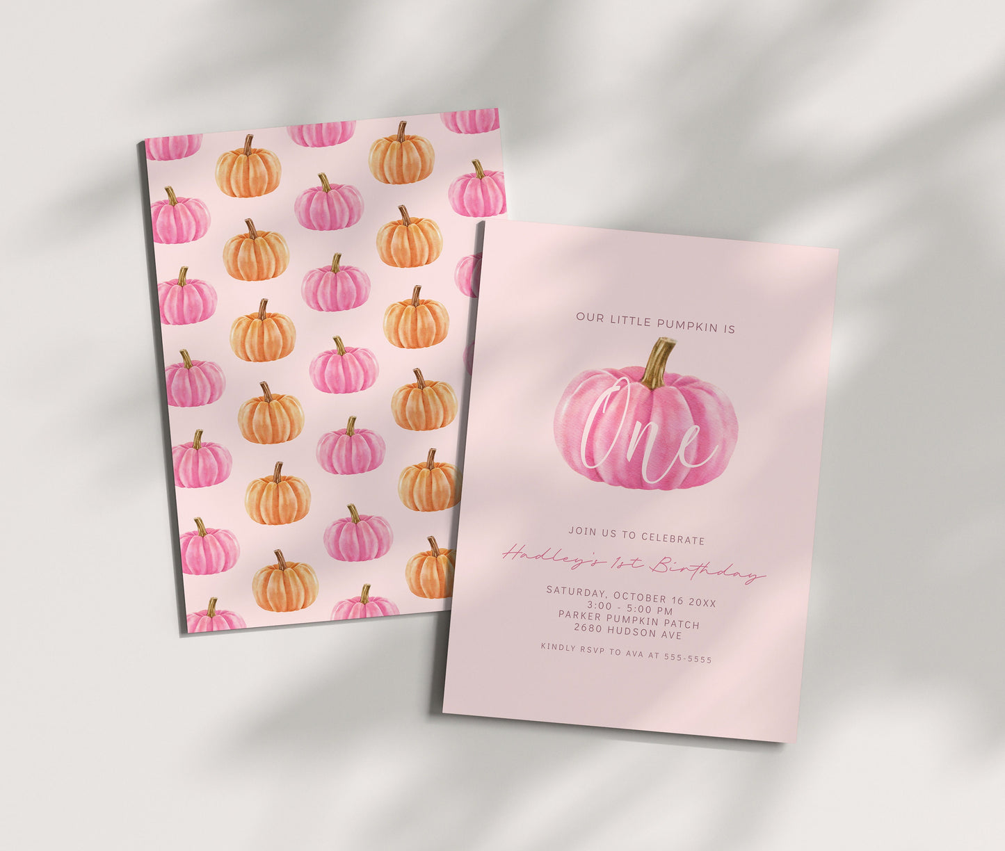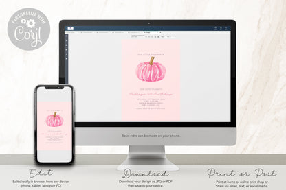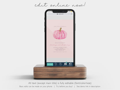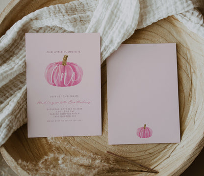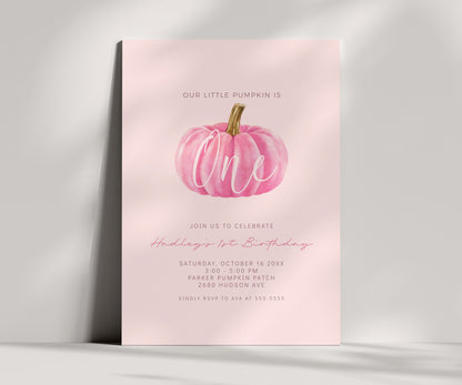 Pink Pumpkin 1st Birthday Invitation