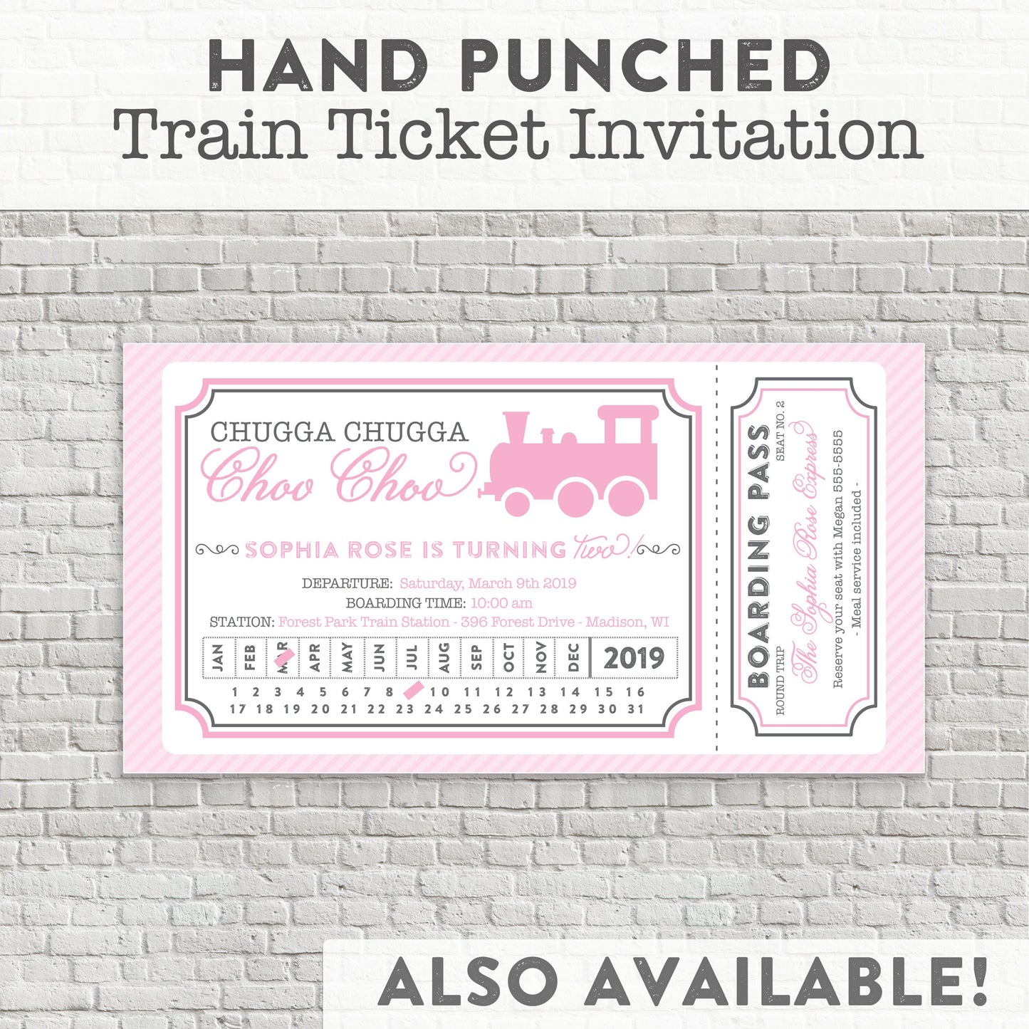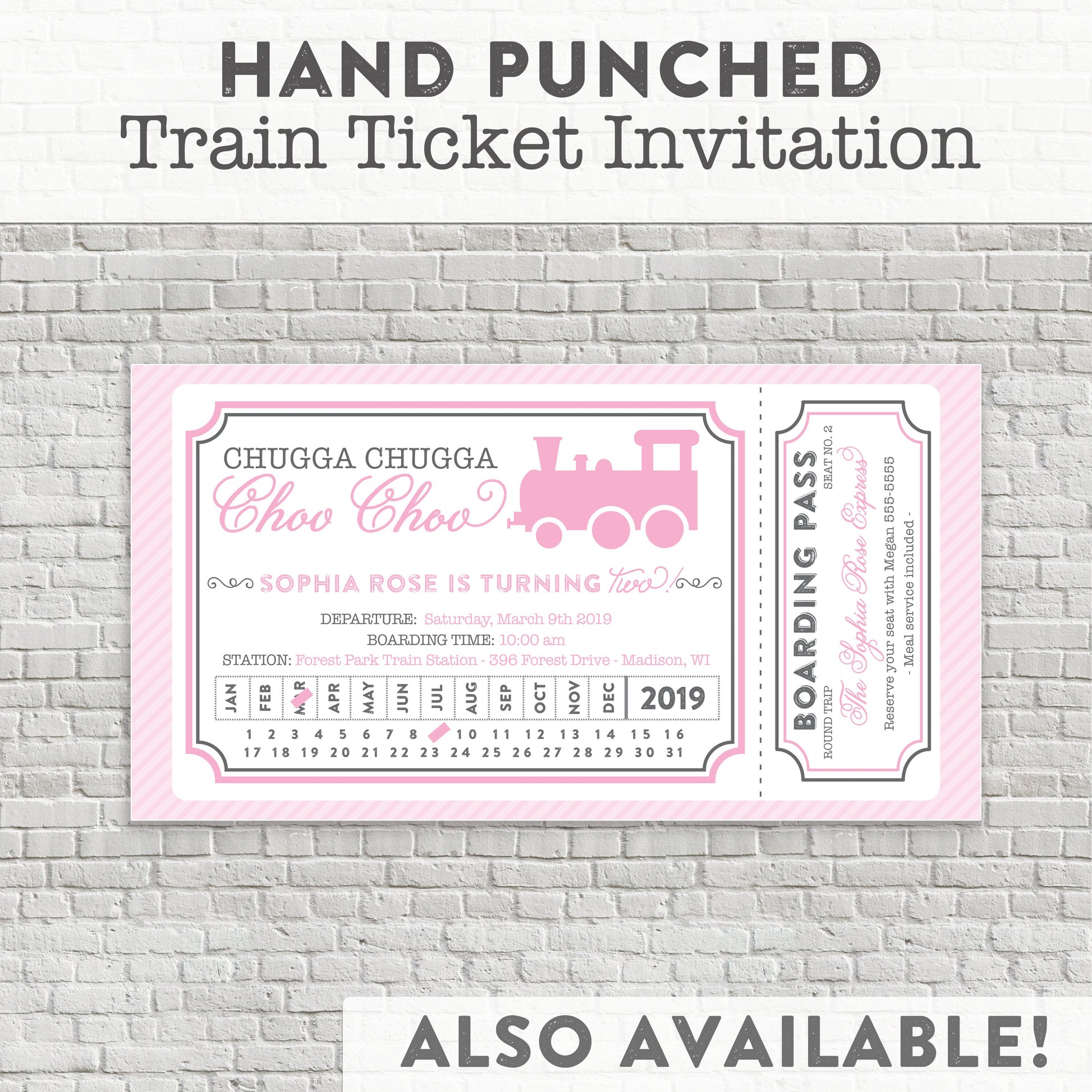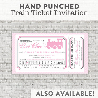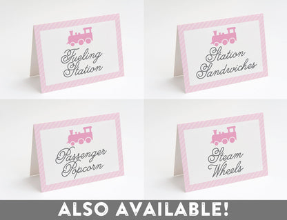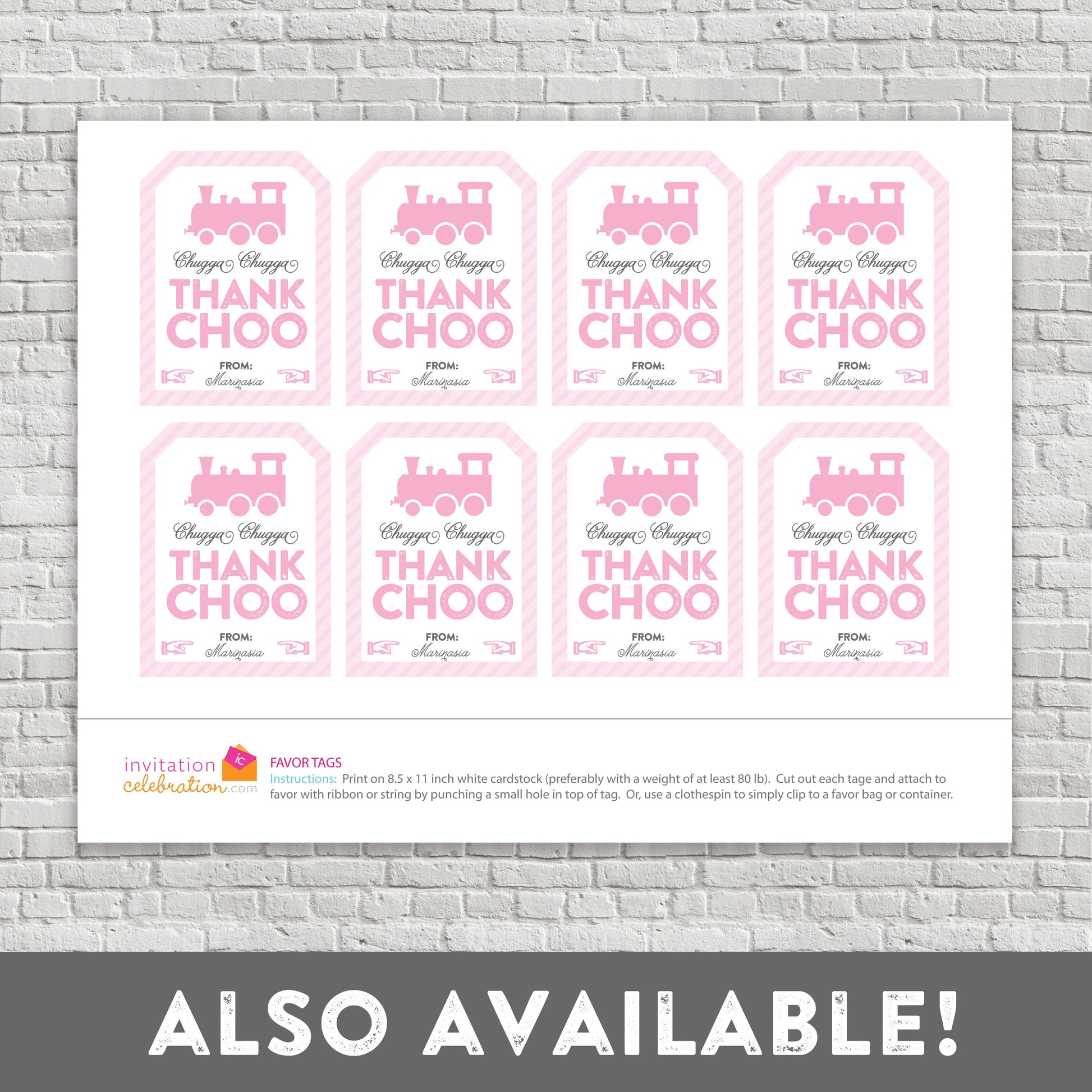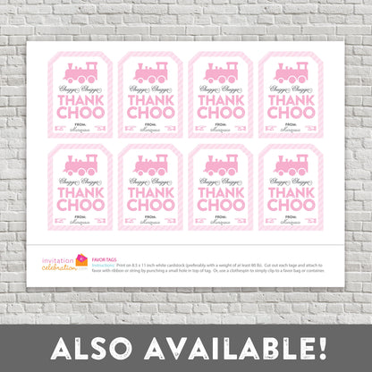 Check out my coordinating train ticket invitation, cupcake toppers, thank you cards & more.