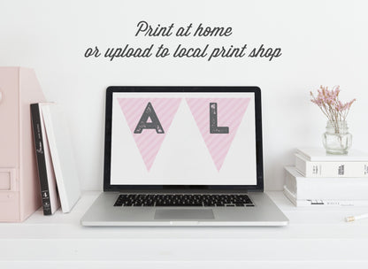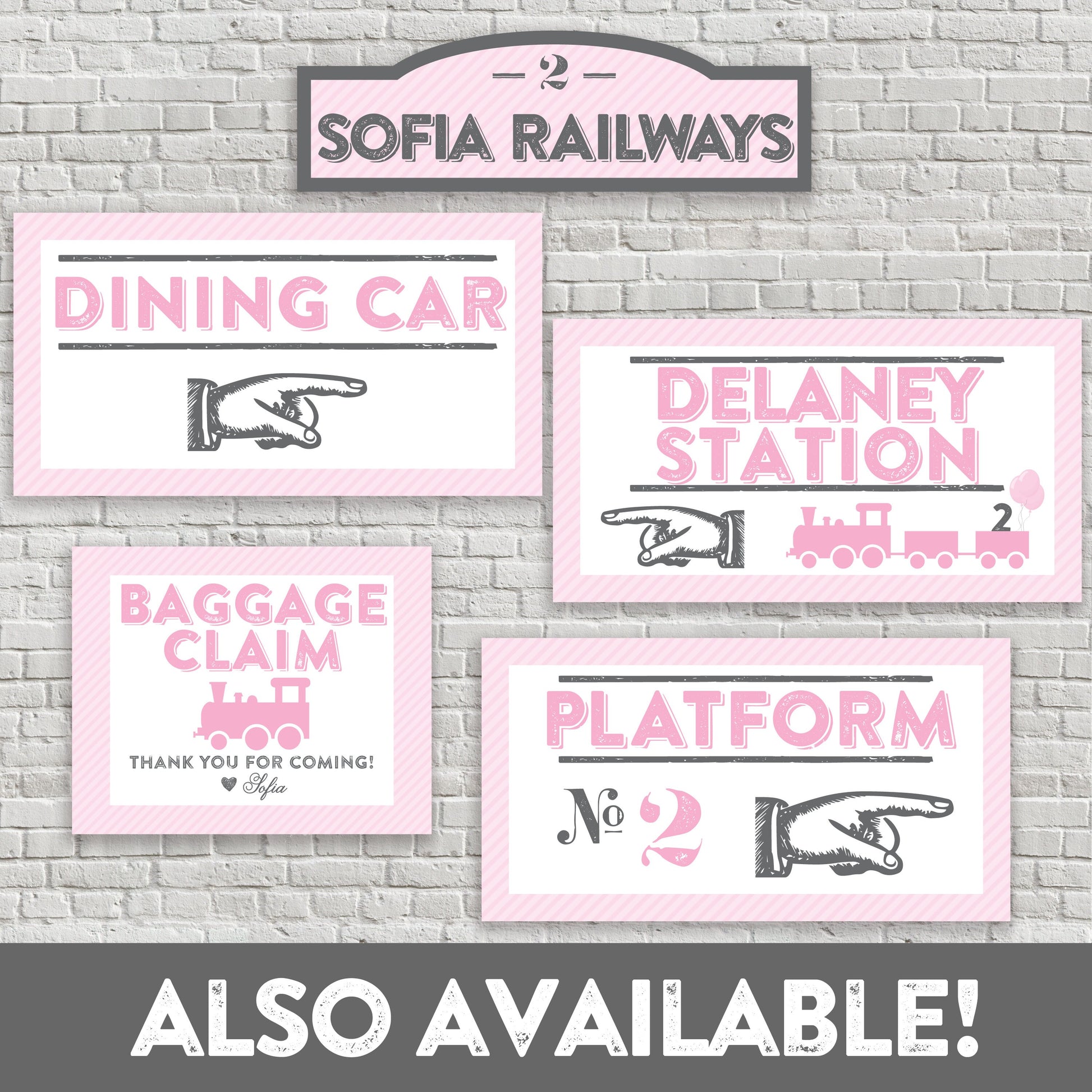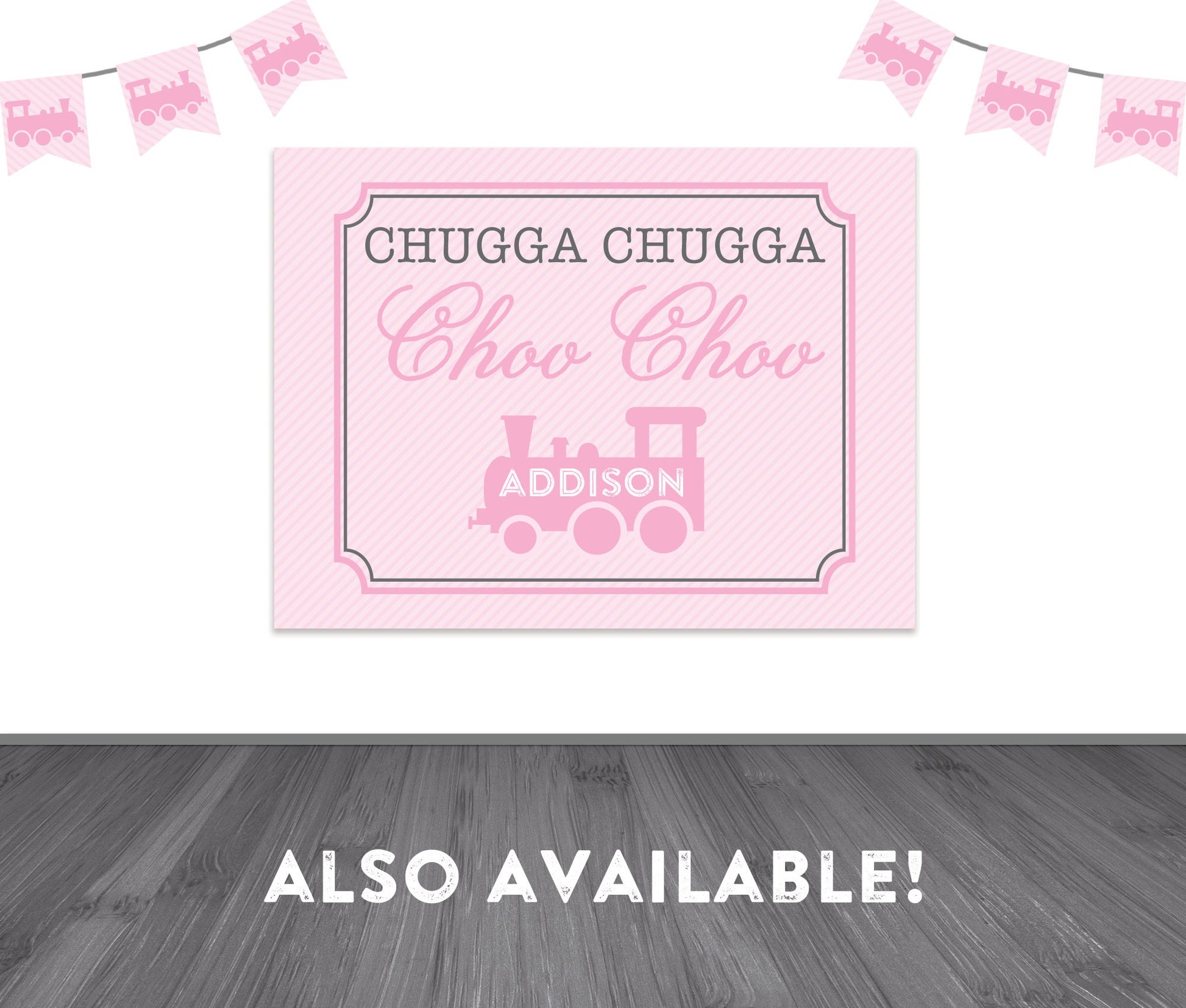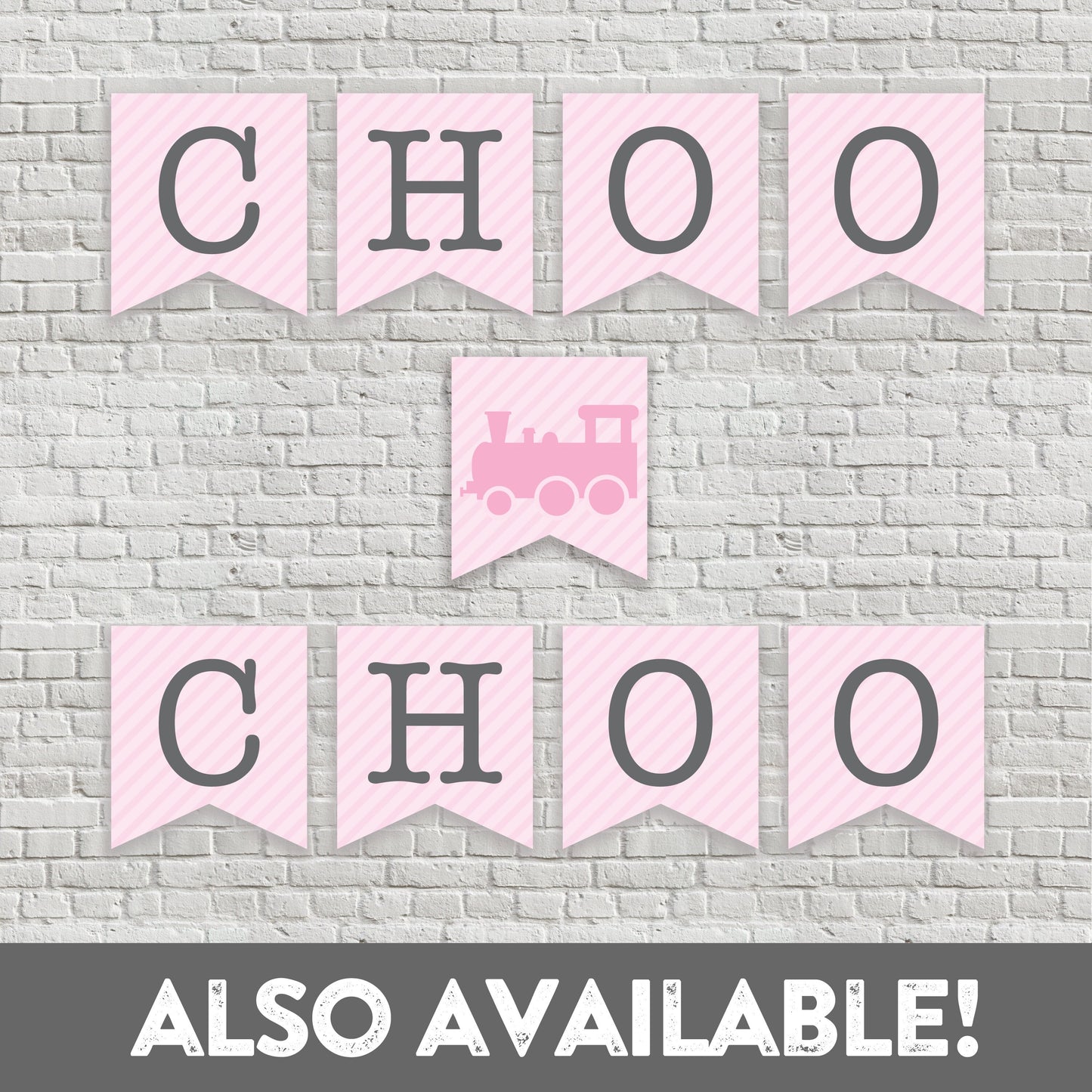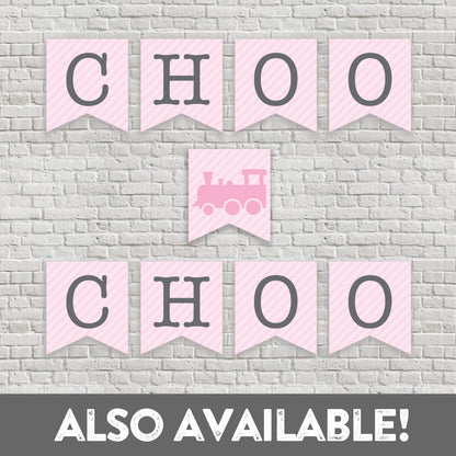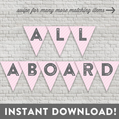 Pink Train Banner - All Aboard - Pink and Gray - Girl Train Party - Girl Birthday Bunting - Vintage Modern - INSTANT DOWNLOAD