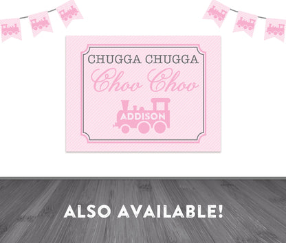 All Aboard Banner. Ready to Download! Pink and Gray Girl Birthday Train Theme.