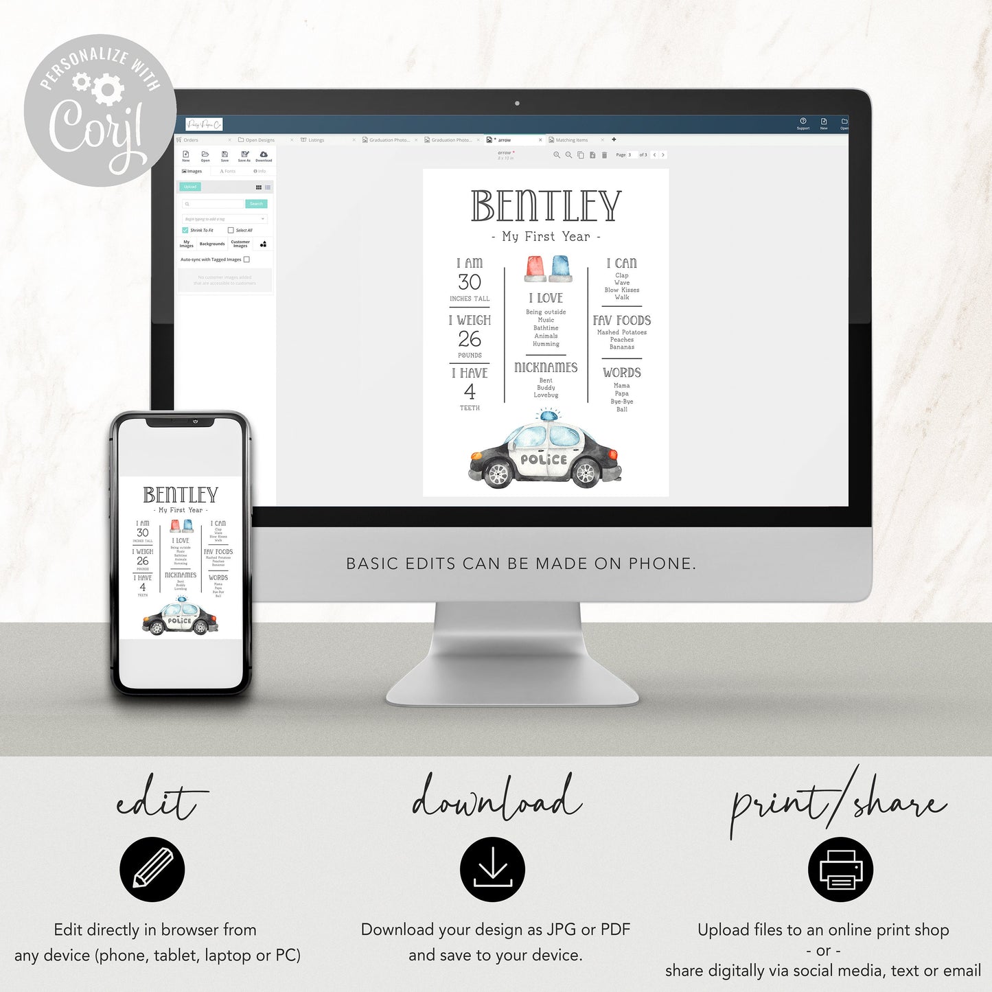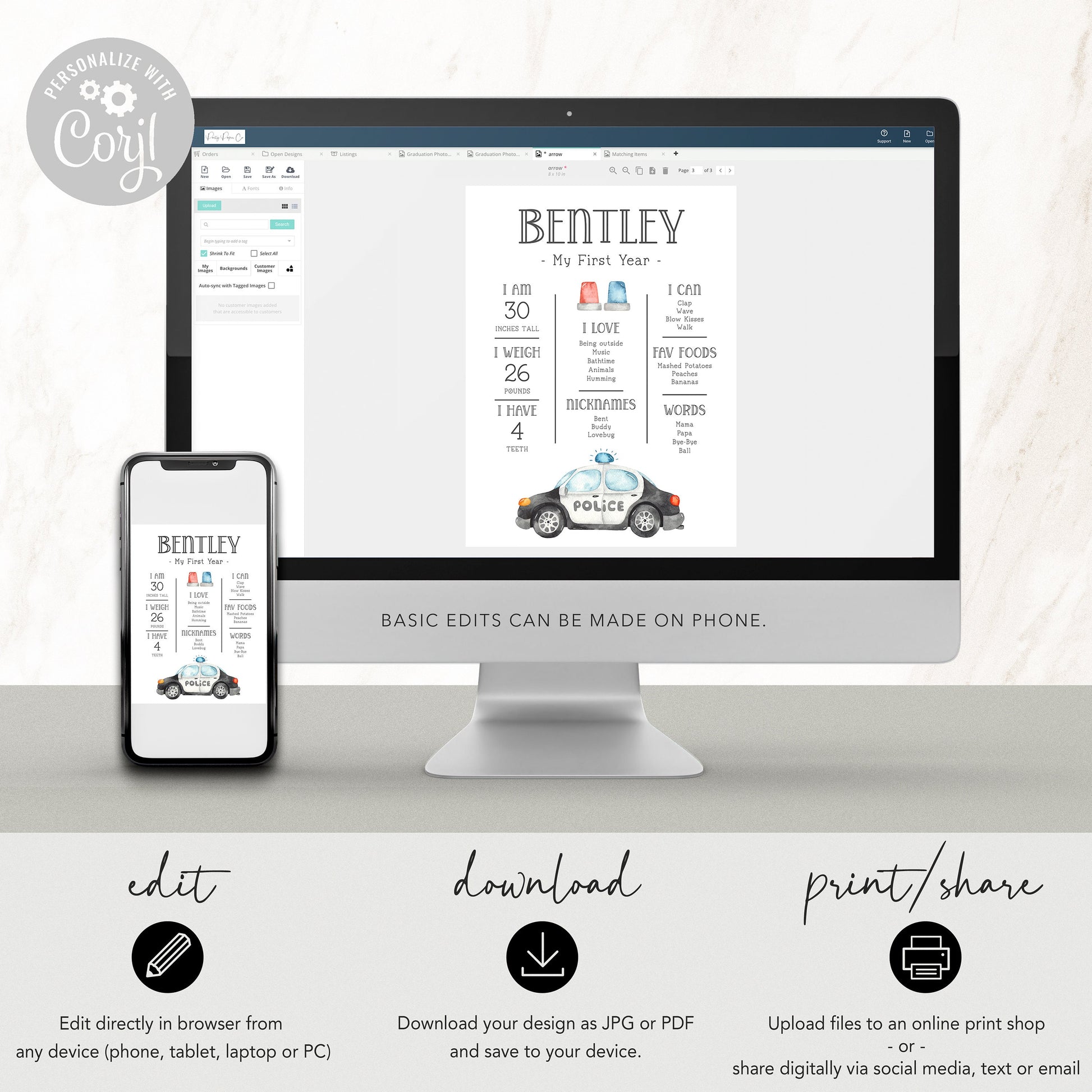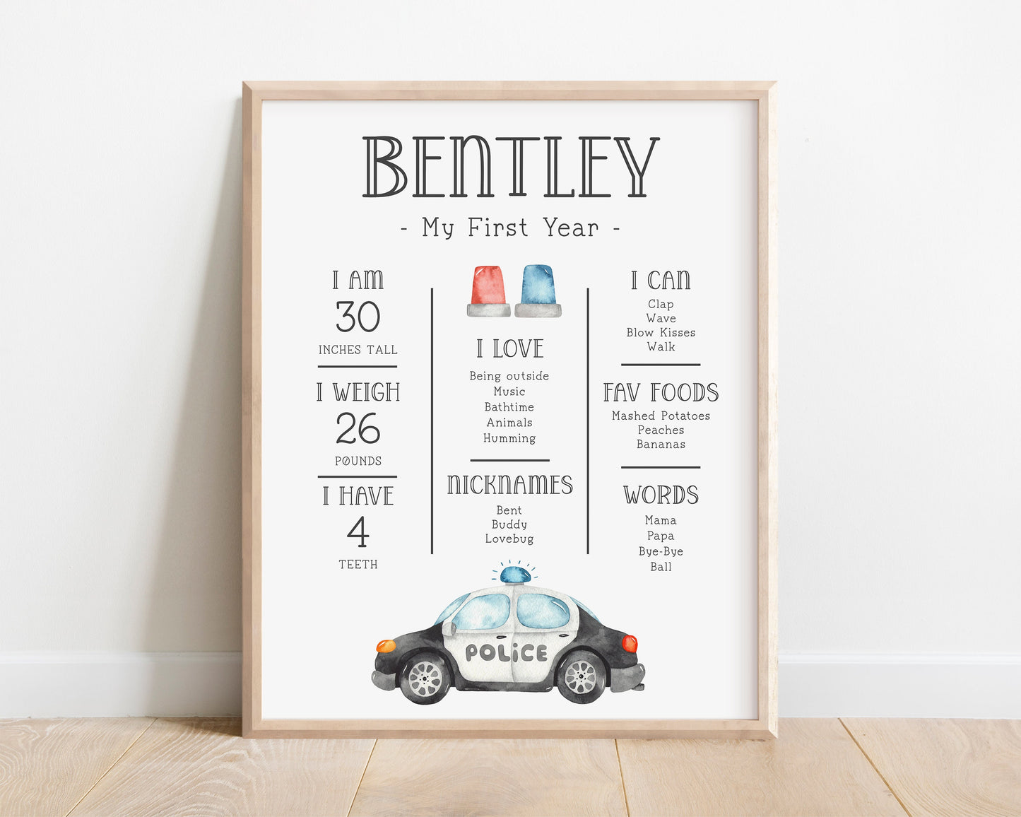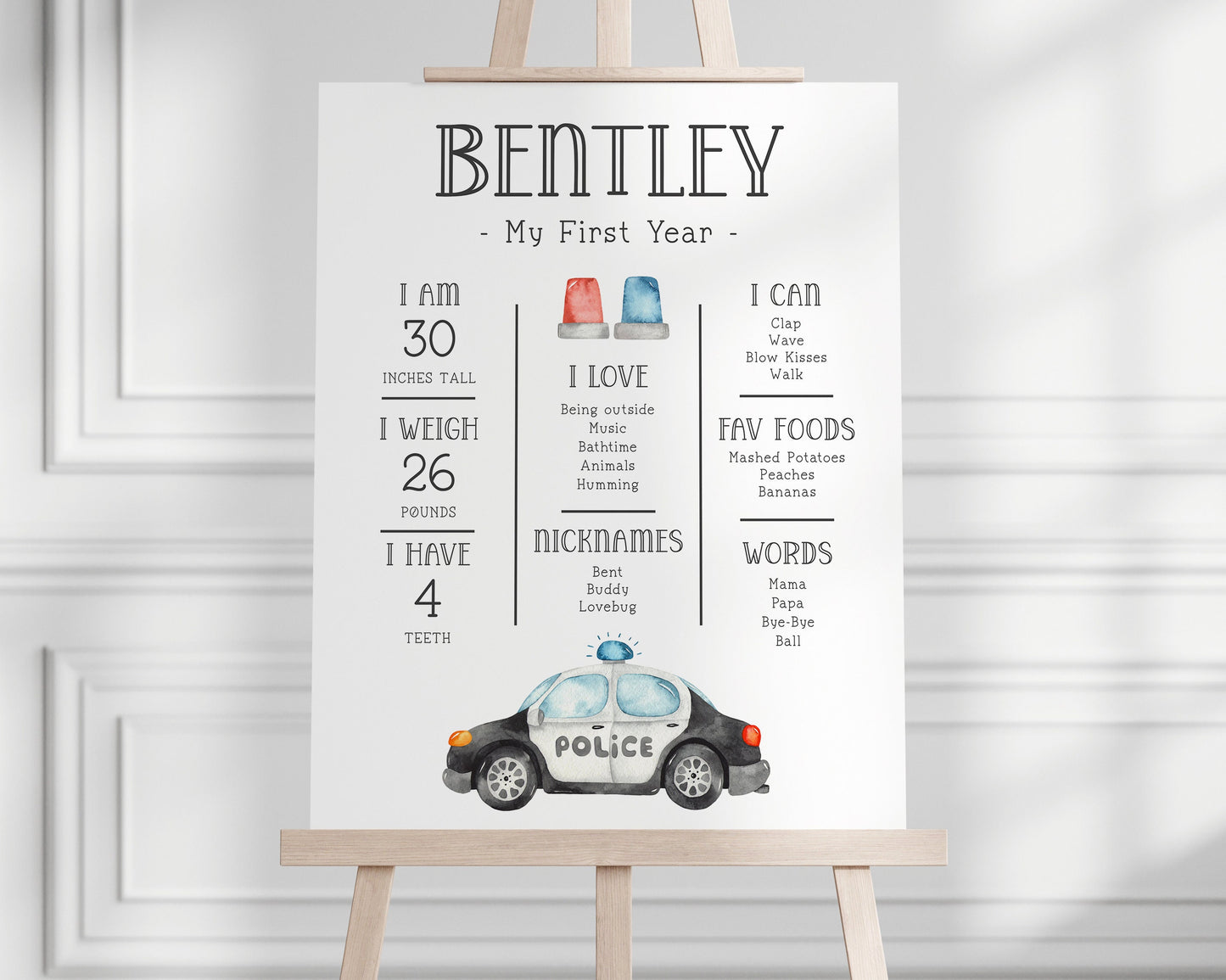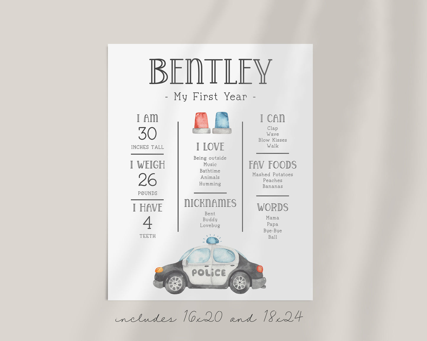 Perfect for displaying milestones at birthday party, then afterwards frame or hang in child's bedroom and/or print a smaller version to include in memory book.