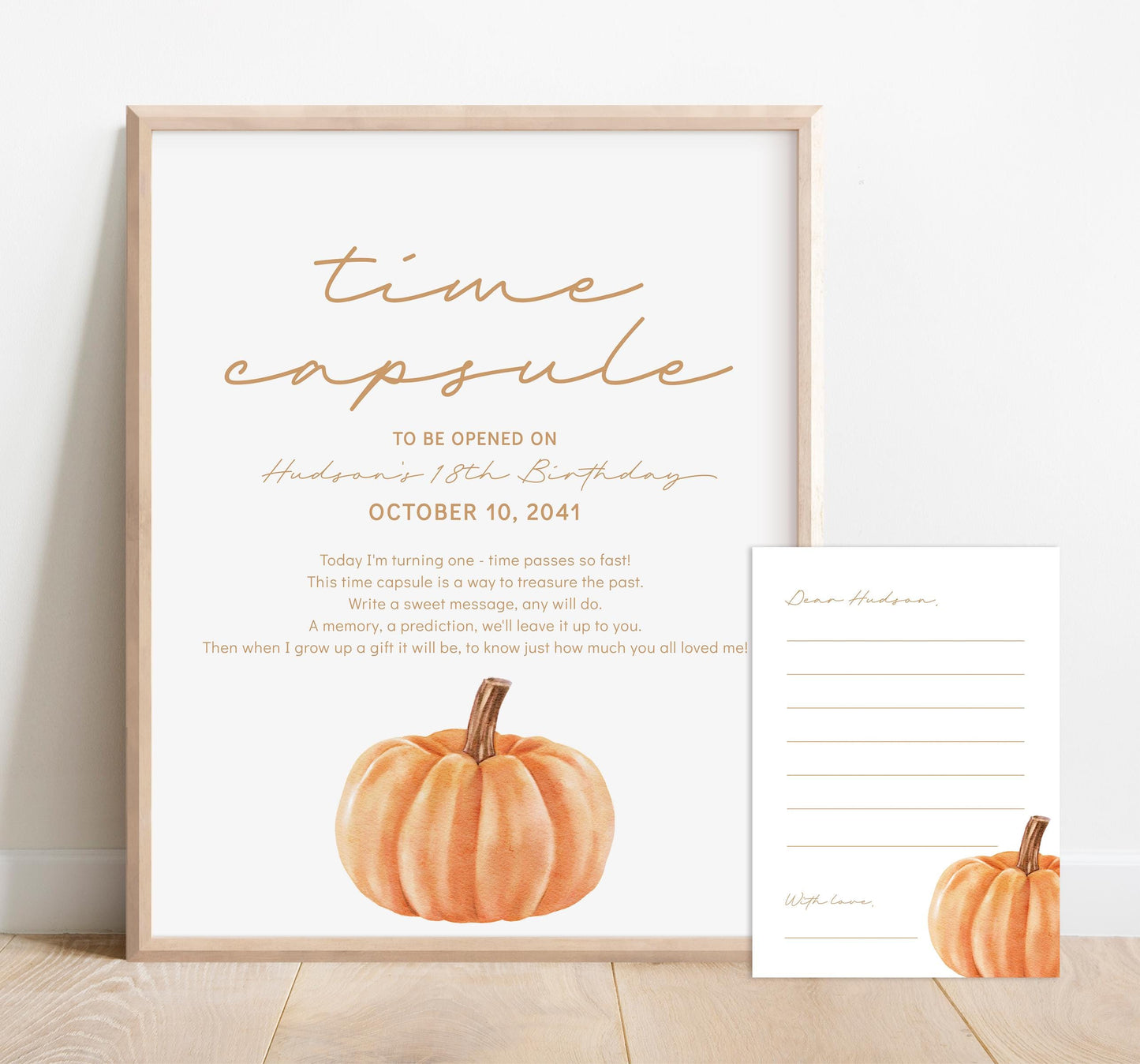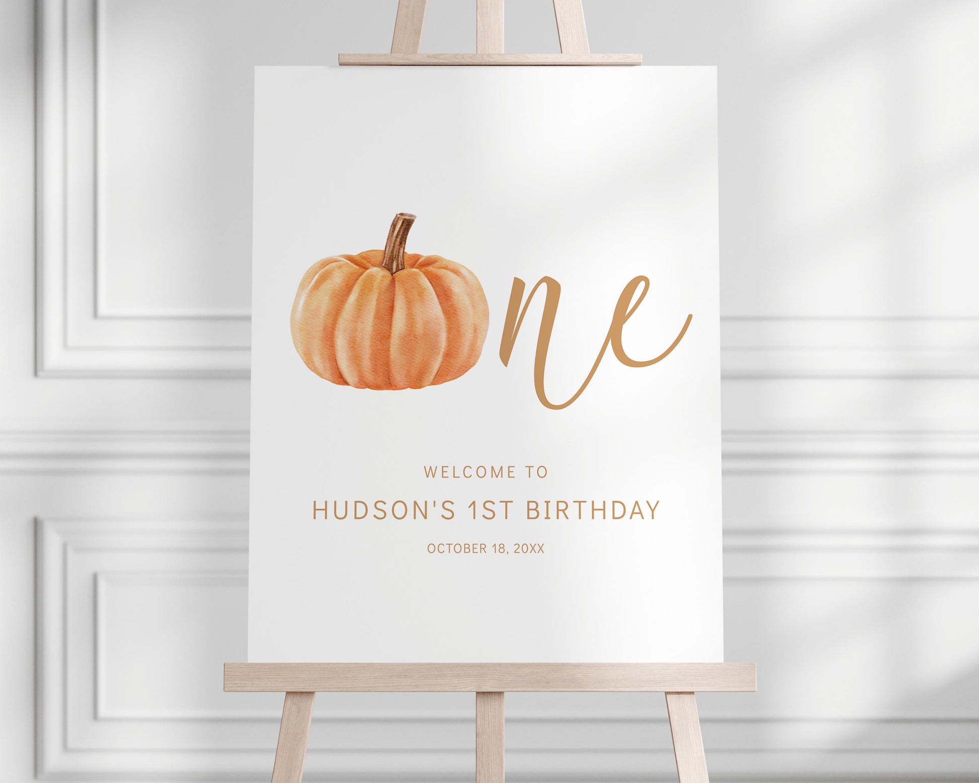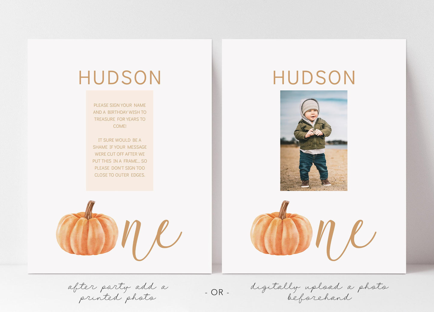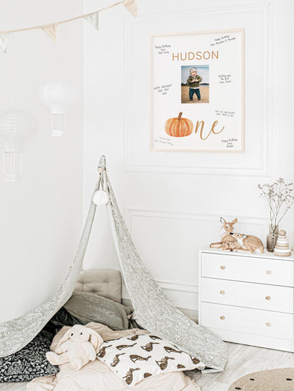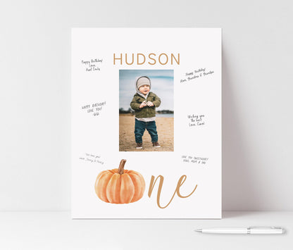 Personalized keepsake to display at child's fall pumpkin 1st birthday party for guests to sign their name or write a birthday wish!