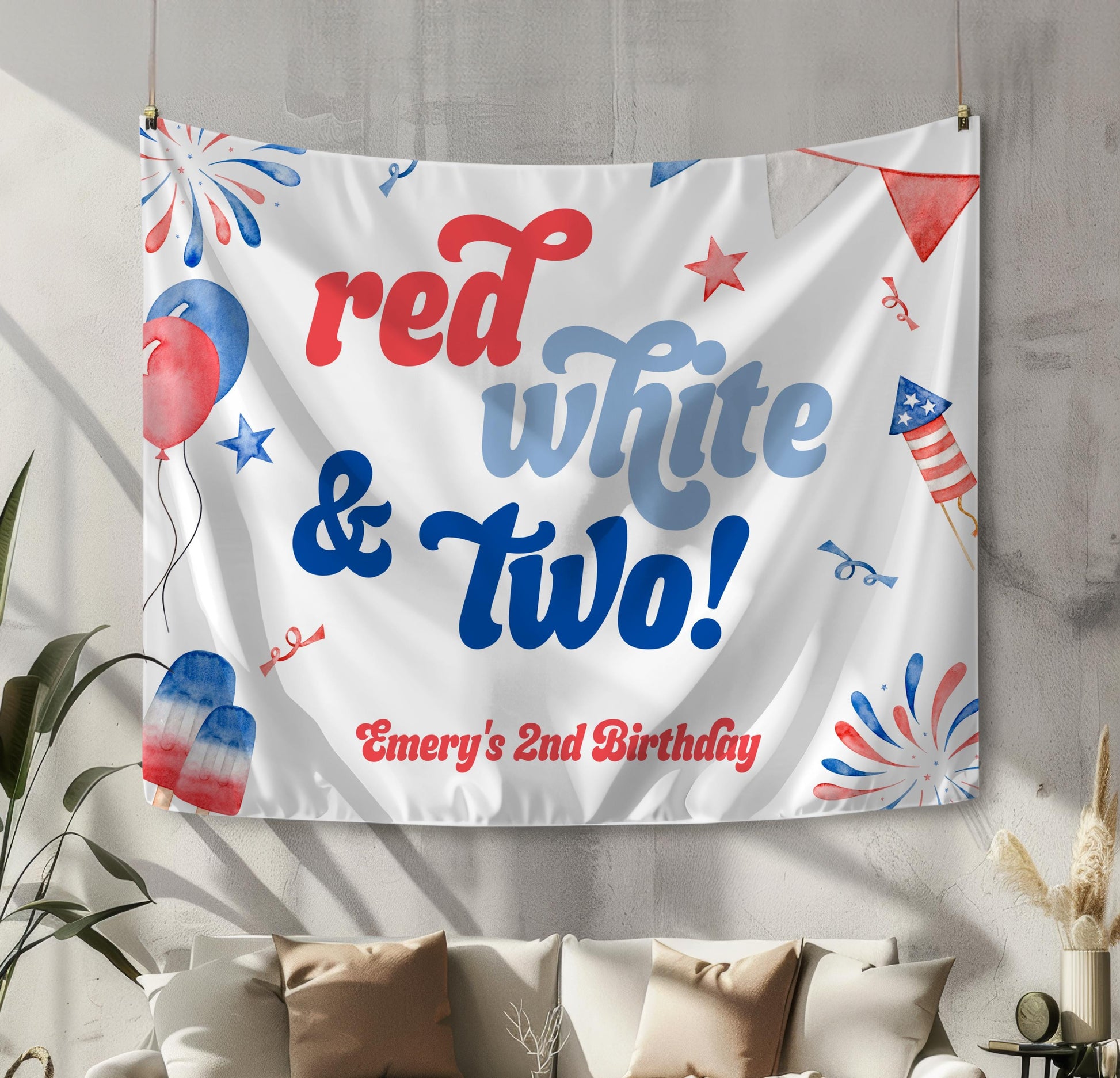 Red White and TWO Backdrop