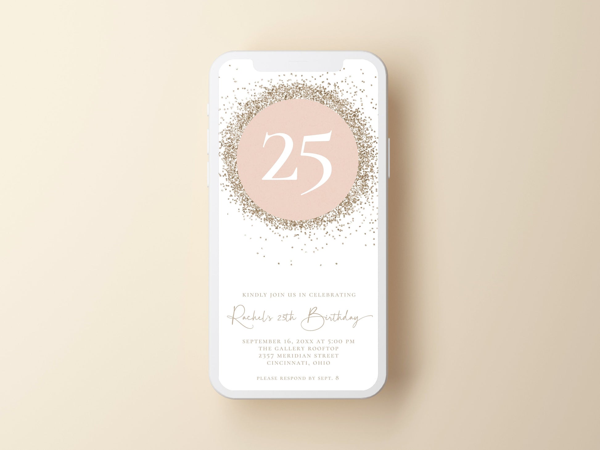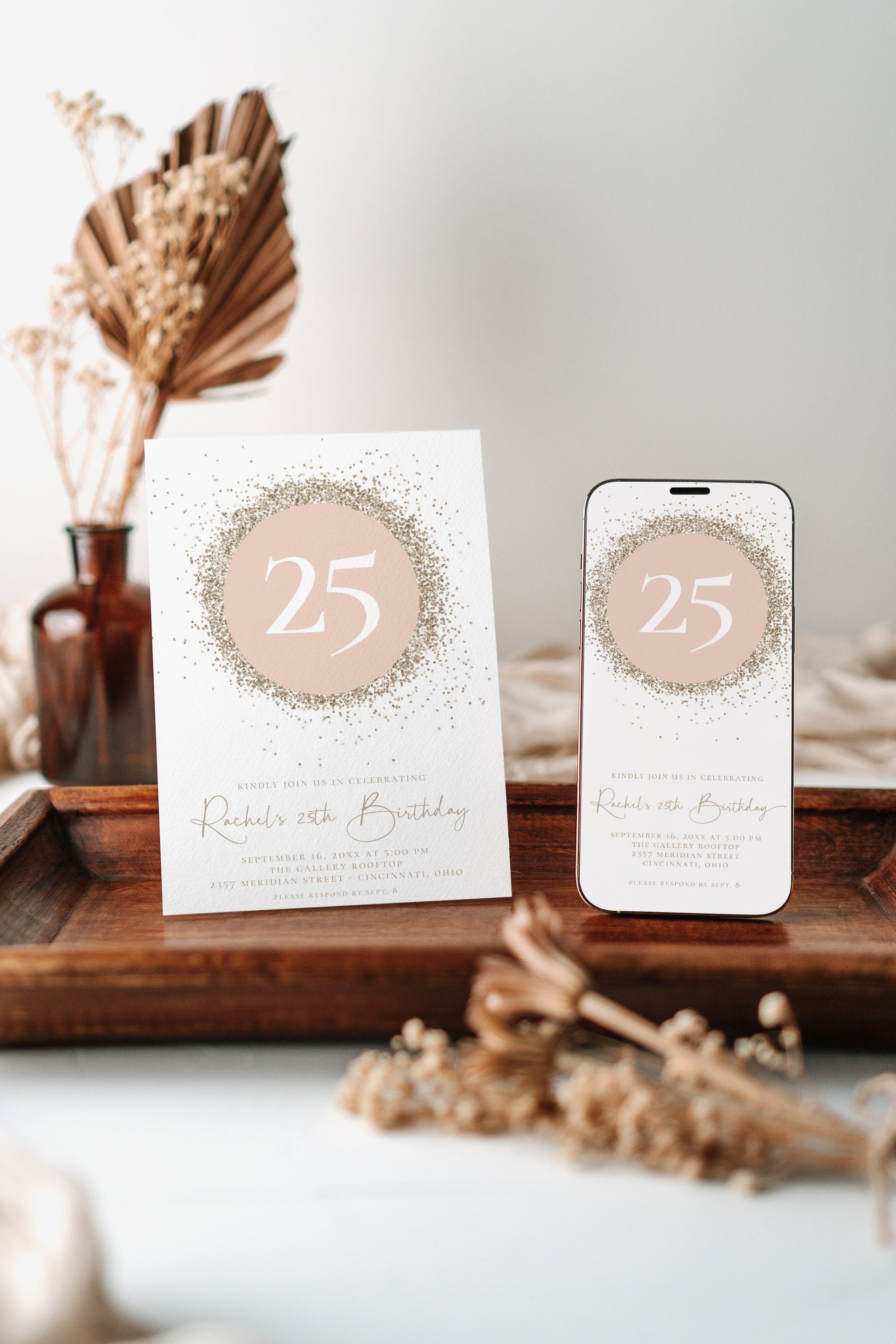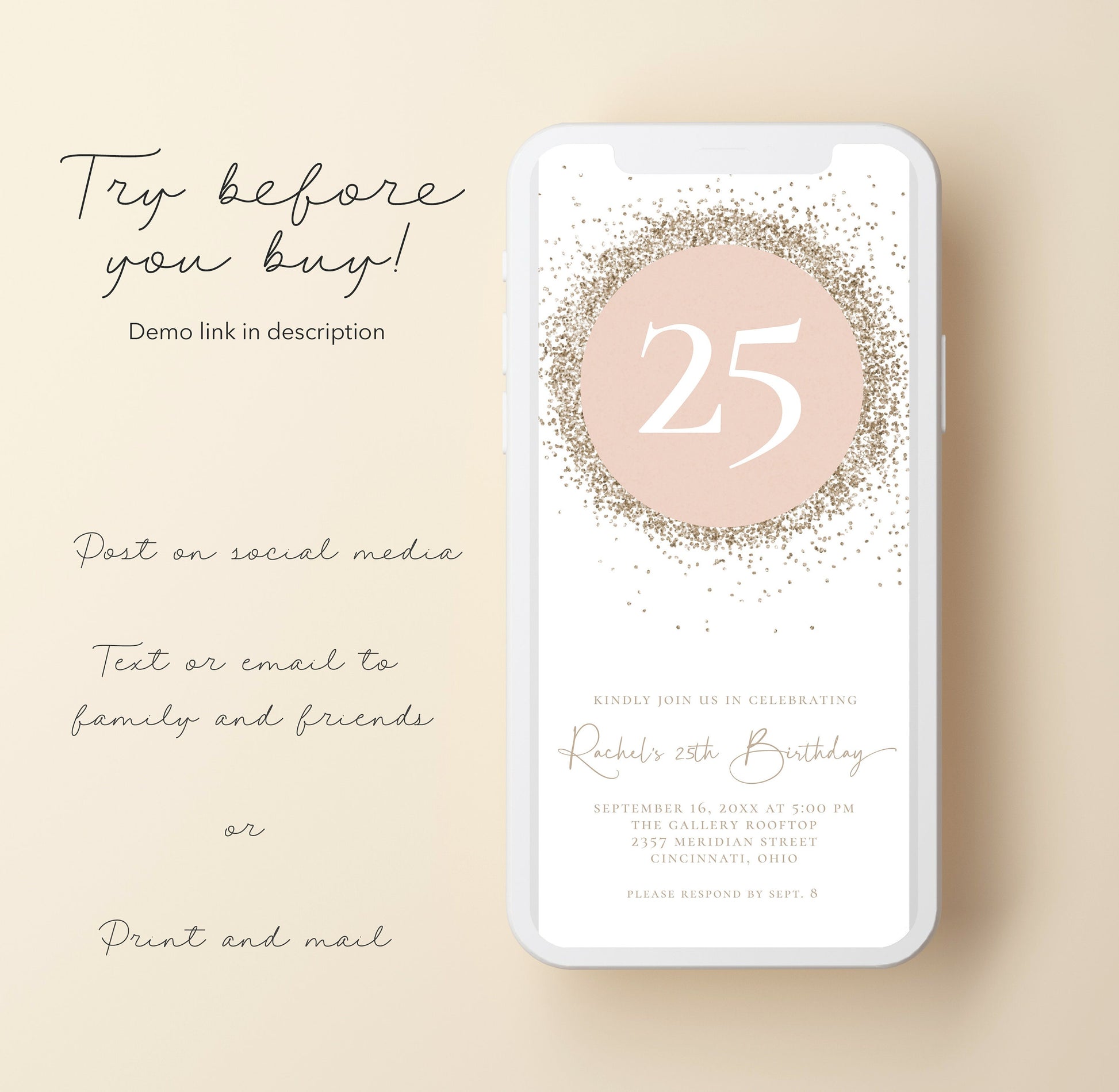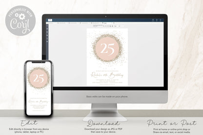Rose Gold 25th Digital Invitation Birthday or Anniversary Invitation - Digital or Printable - EDITABLE Template