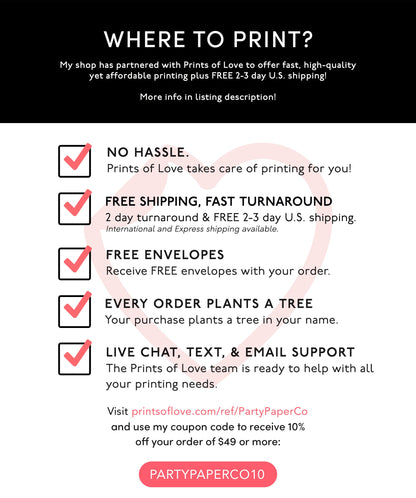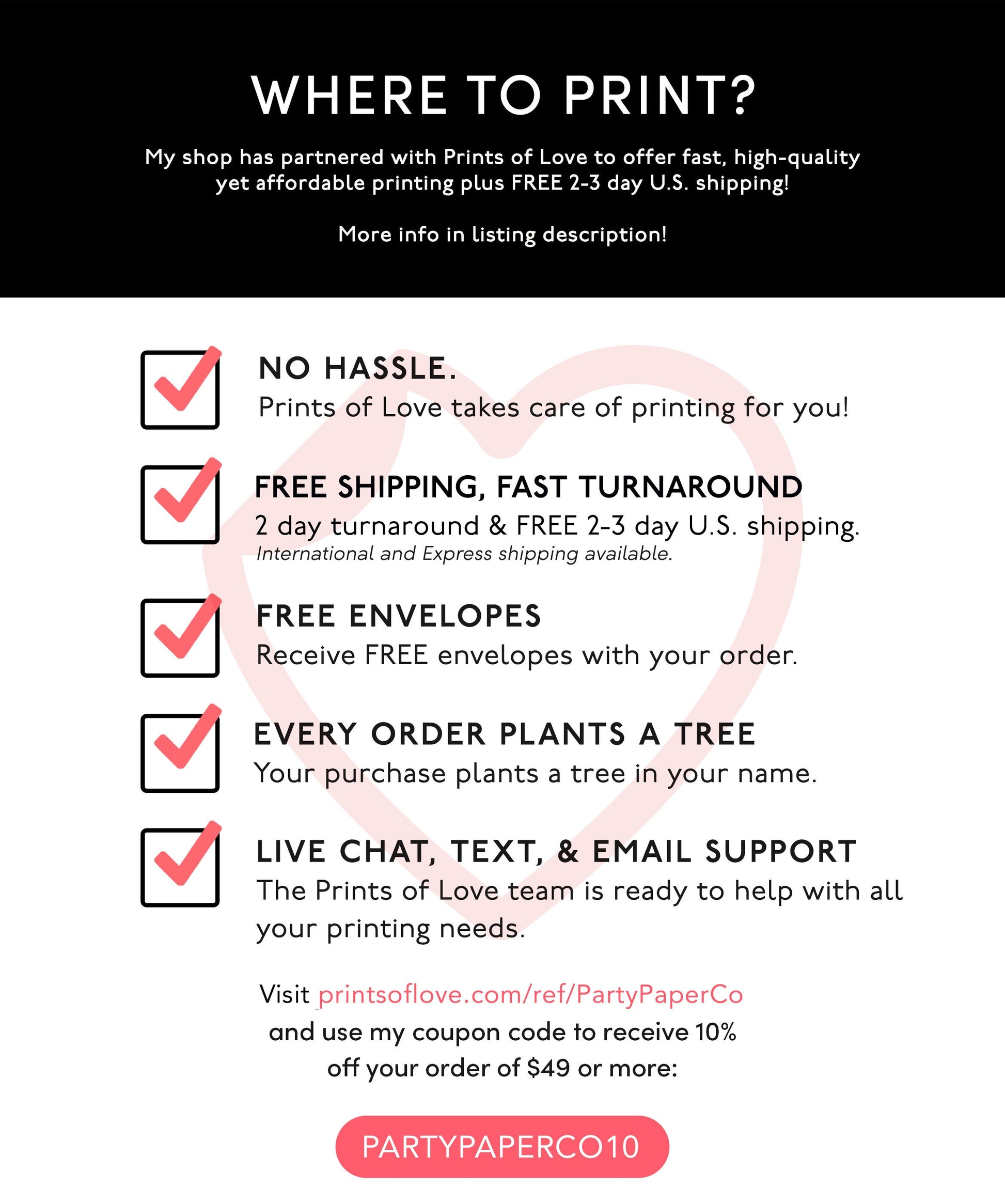 Use code "PartyPaperCo10" at Prints of Love for 10% off your order of $49+!
