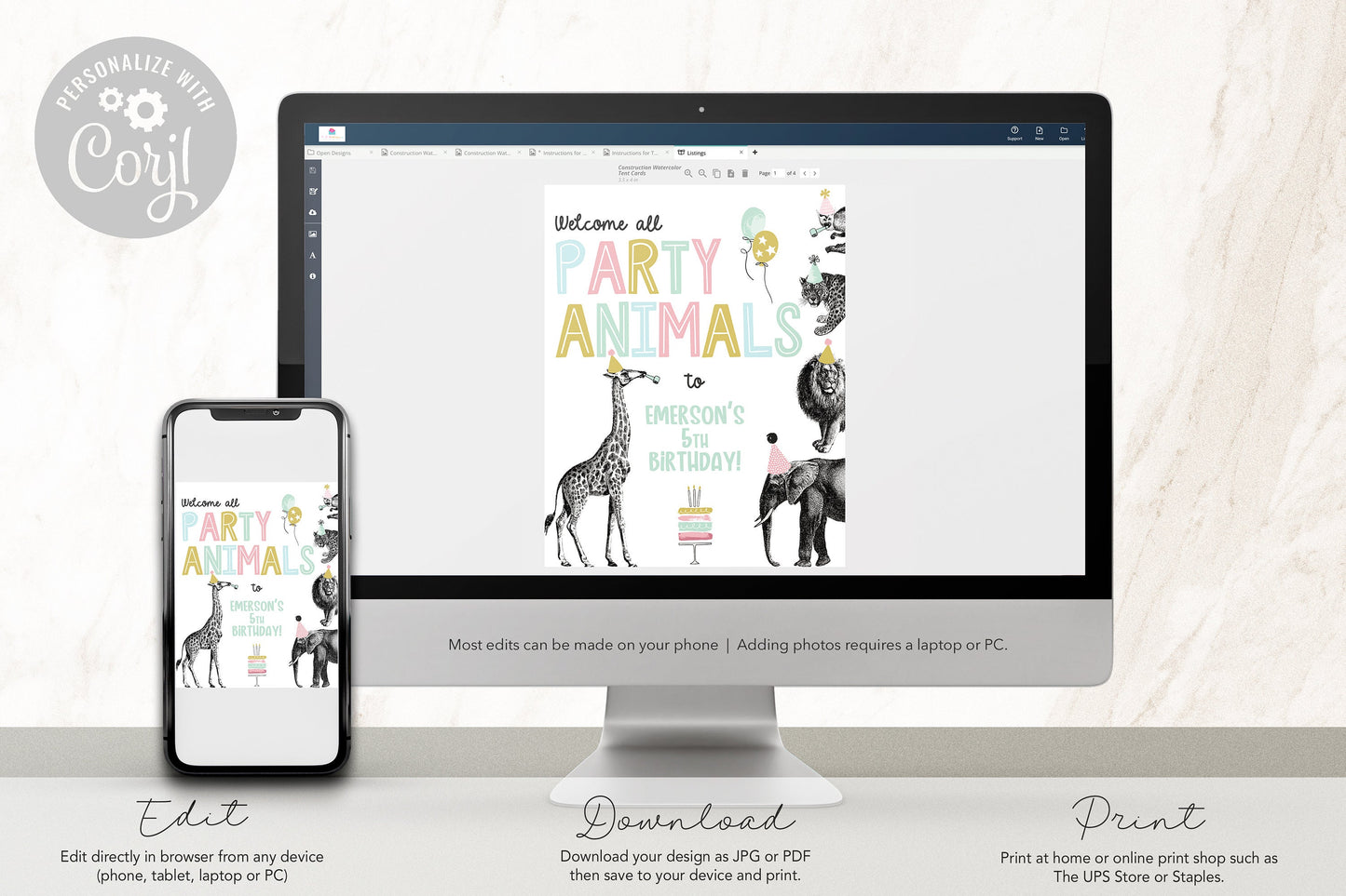 This was perfect for my needs! This allowed us to do both digital and print invites. I got the digital template file immediately, the online editing software is easy peasy, and the seller was very responsive to questions. The digital version of the invite was great for the boys inviting friends. I just received the prints for the invites we'll mail, and the quality is great! Thank you!