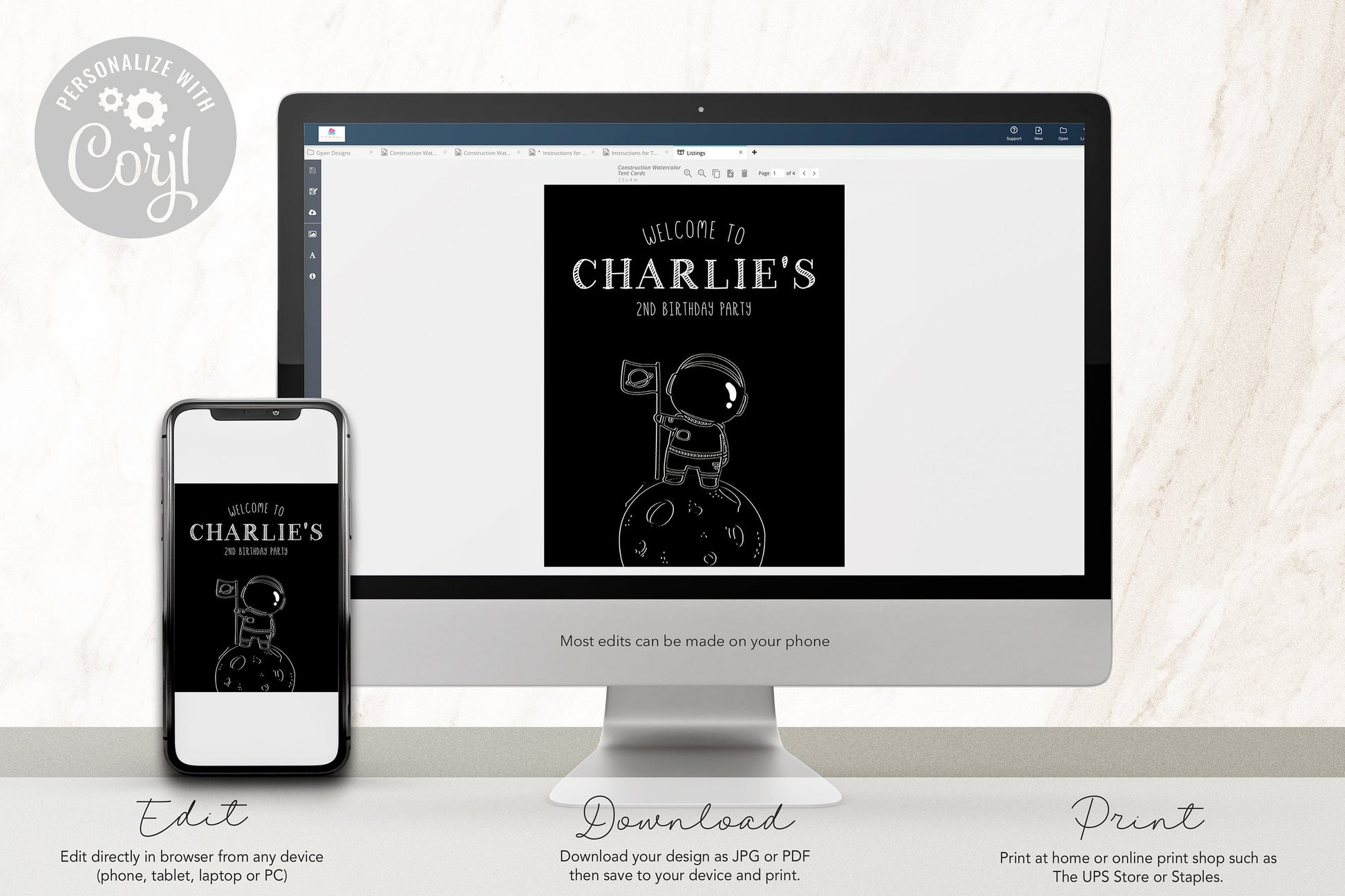 This was perfect for my needs! This allowed us to do both digital and print invites. I got the digital template file immediately, the online editing software is easy peasy, and the seller was very responsive to questions. The digital version of the invite was great for the boys inviting friends. I just received the prints for the invites we'll mail, and the quality is great! Thank you!