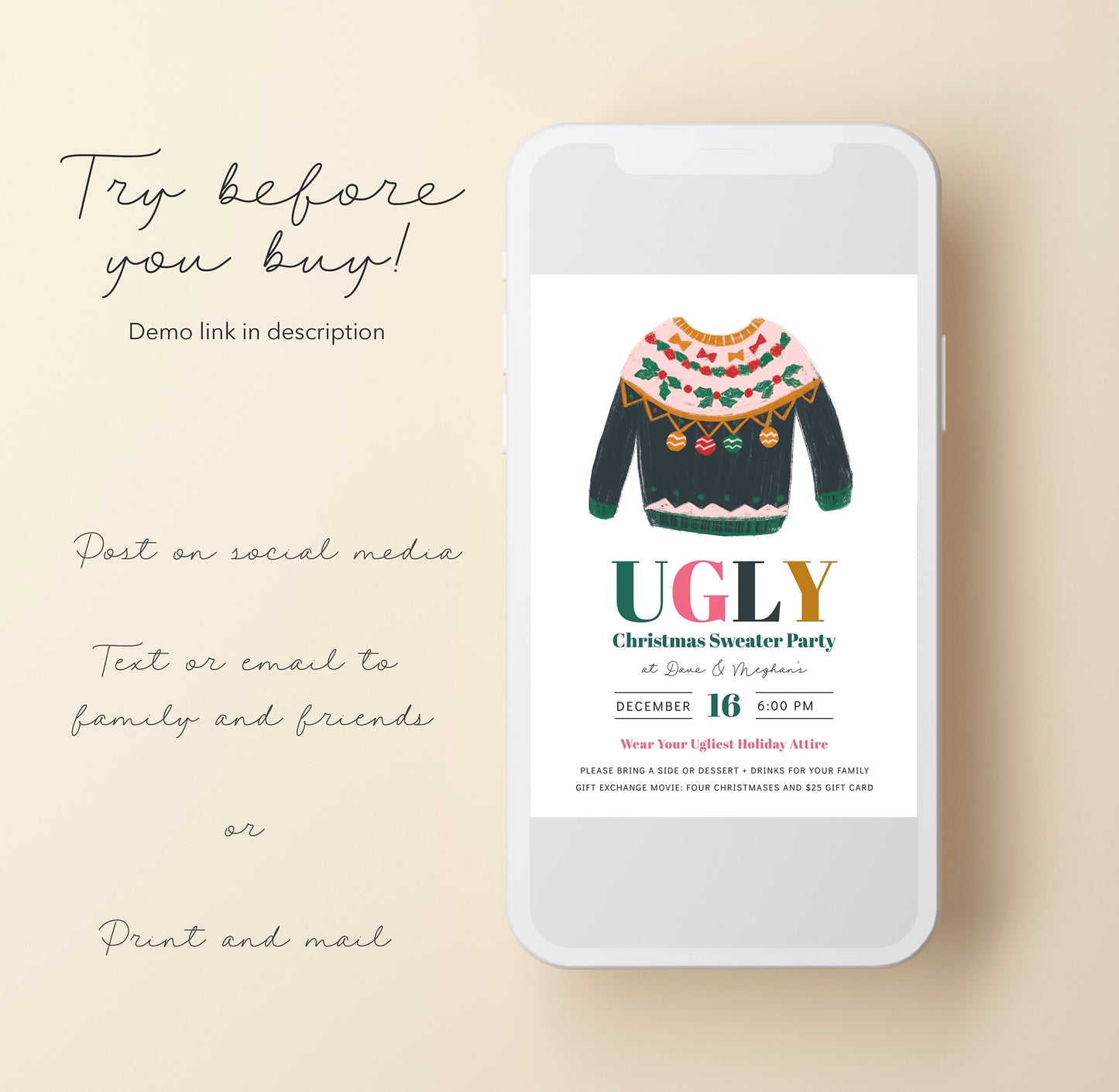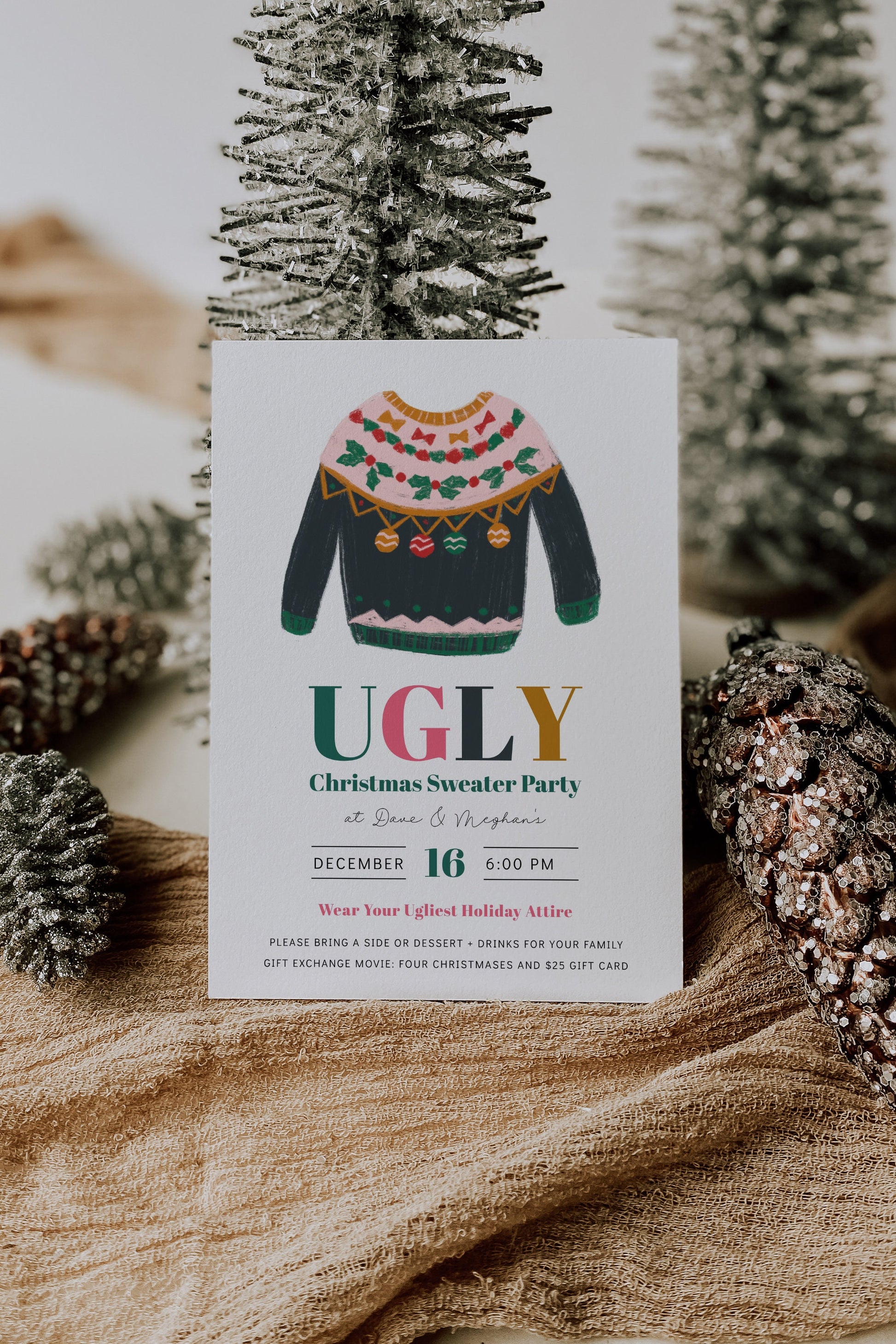 Modern Ugly Christmas Sweater Invitation